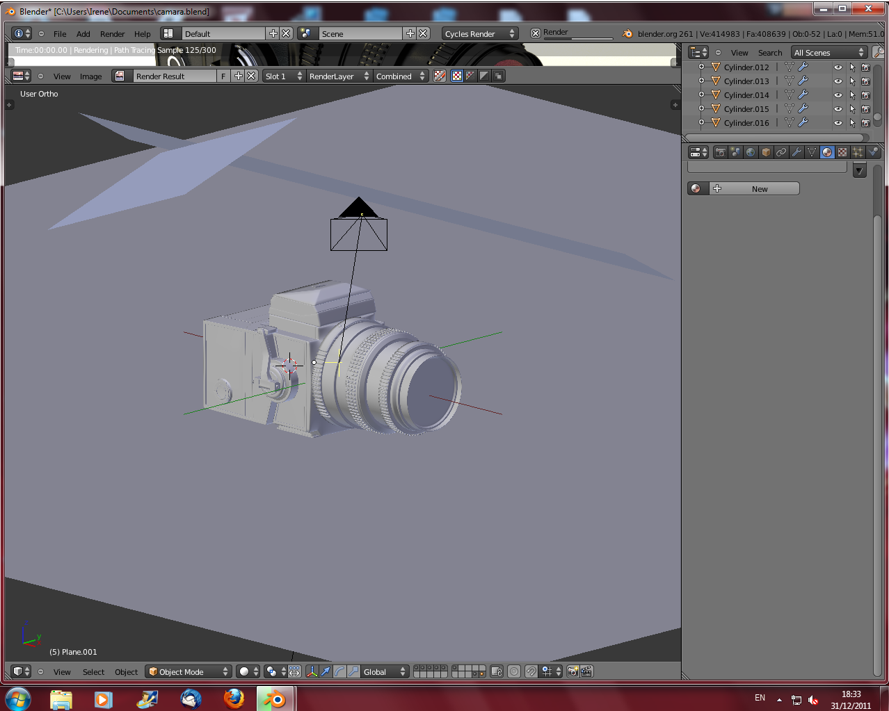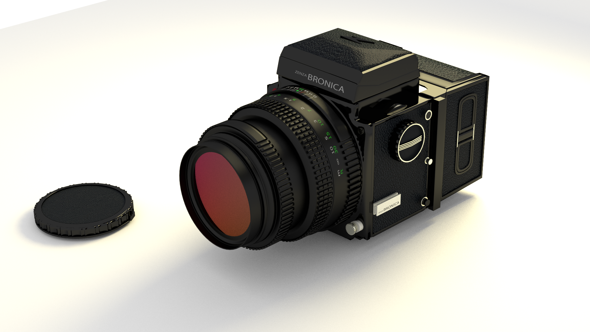 Bueno, estos días he estado modelando una cámara bronica, todavía no la he acabado, faltan muchos detalles, pero ya he adelantado algo de texturas. Estoy experimentando con Cycles, poniéndome al día. Probaré también las render layers, a ver qué tal me funciona.