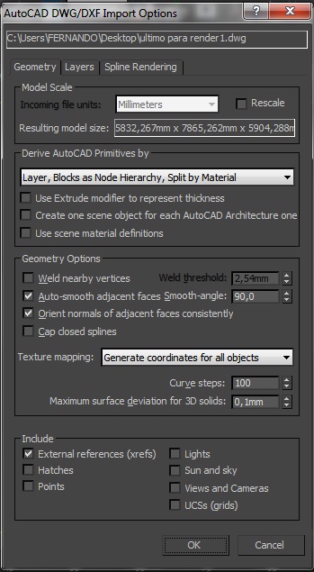 Te mando 4 capturas de pantalla de mis parámetros en 3d Studio para importar desde AutoCAD. Soy nuevo dime si te han llegado correctamente, aquí adjuntar es un poco raro.