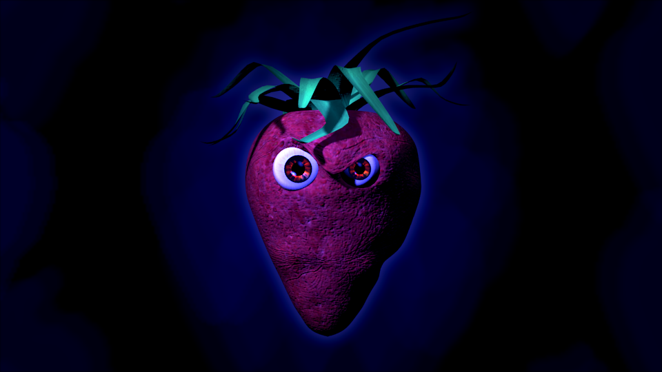 Yo no llamaría crear un personaje a modelar una fresa con ojos. De todos modos, creo que todos lo hicimos alguna vez. Pues, para ser una fresa (con ojos) esta correcto el modelado, aunque las hojas (cabello?) en la cabeza pudiera tener mayor detalle, y bien pudiera el Bump que les sobra estar aplicado al cuerpo, que casi no se nota el relieve de las semillas, que, por cierto, creo que están mal orientadas, por lo general apuntan hacia abajo.