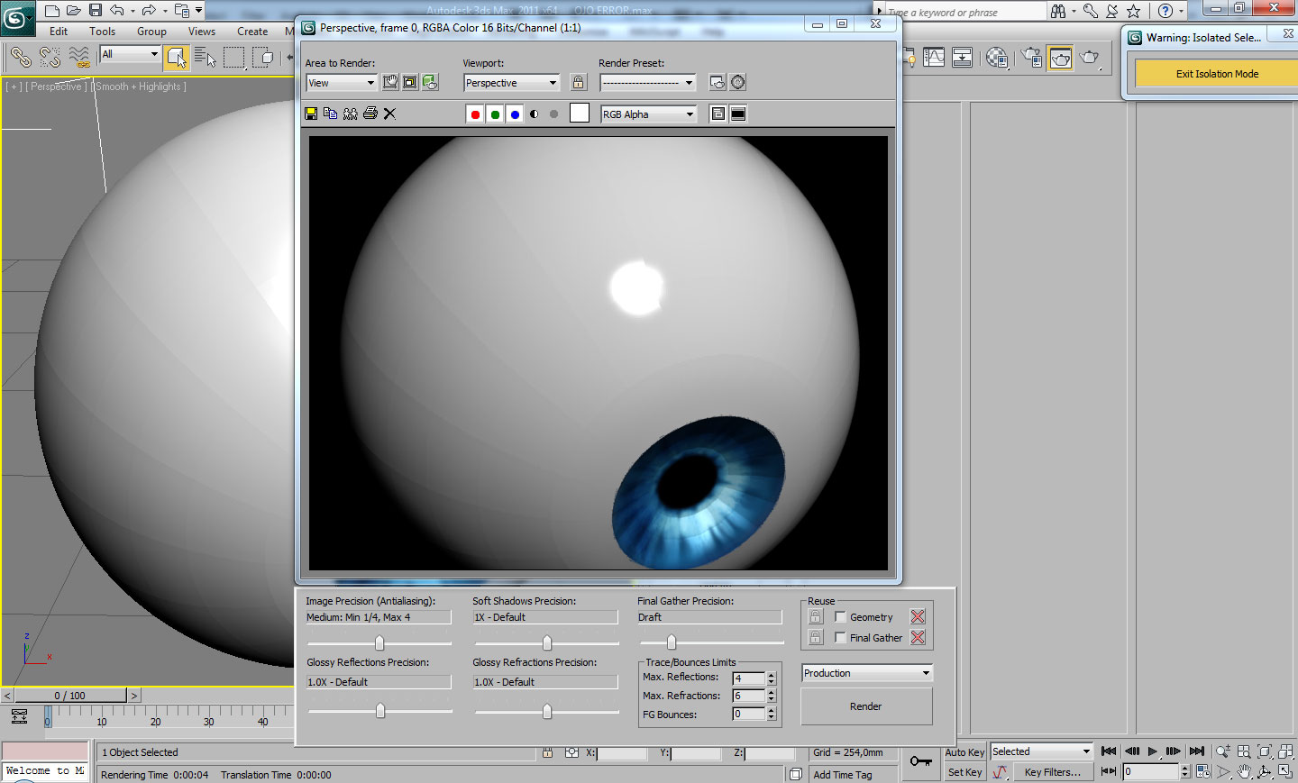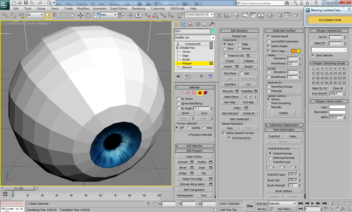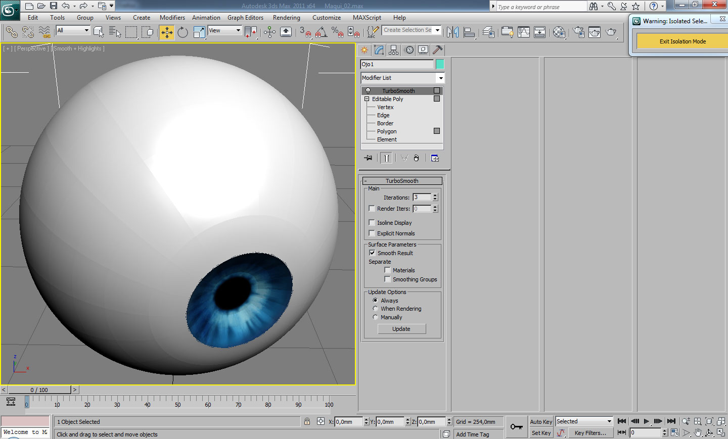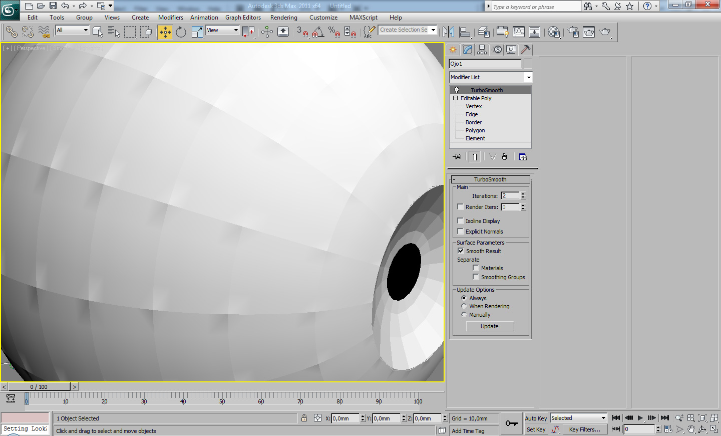 Hola. Tengo un error en 3ds Max 2011 en el suavizado de un elemento. En este caso en particular es un ojo (pero me paso también en otro modelado.) que lo tengo que trabajar. Es exportado de otro programa (no sé cuál.) en un (*.obj), quizás aquí está el problema.