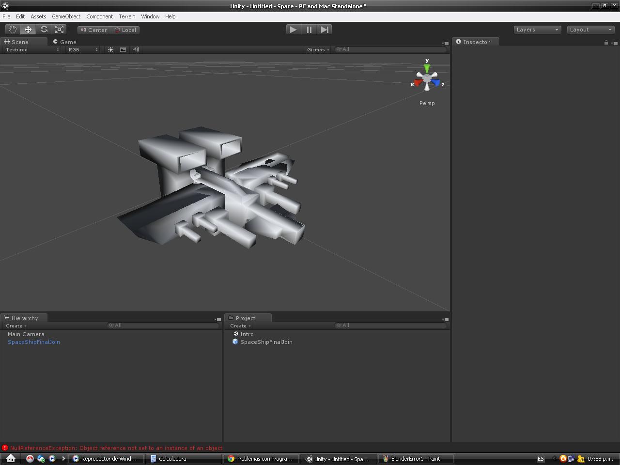 Bueno, desde algunos días venia con la idea de empezar mi juego en Unity 3d, un excelente motor, pero veo que Blender me ha estado dando problemas, sea el formato con el que exporte, dejo con imágenes de los dos programas.