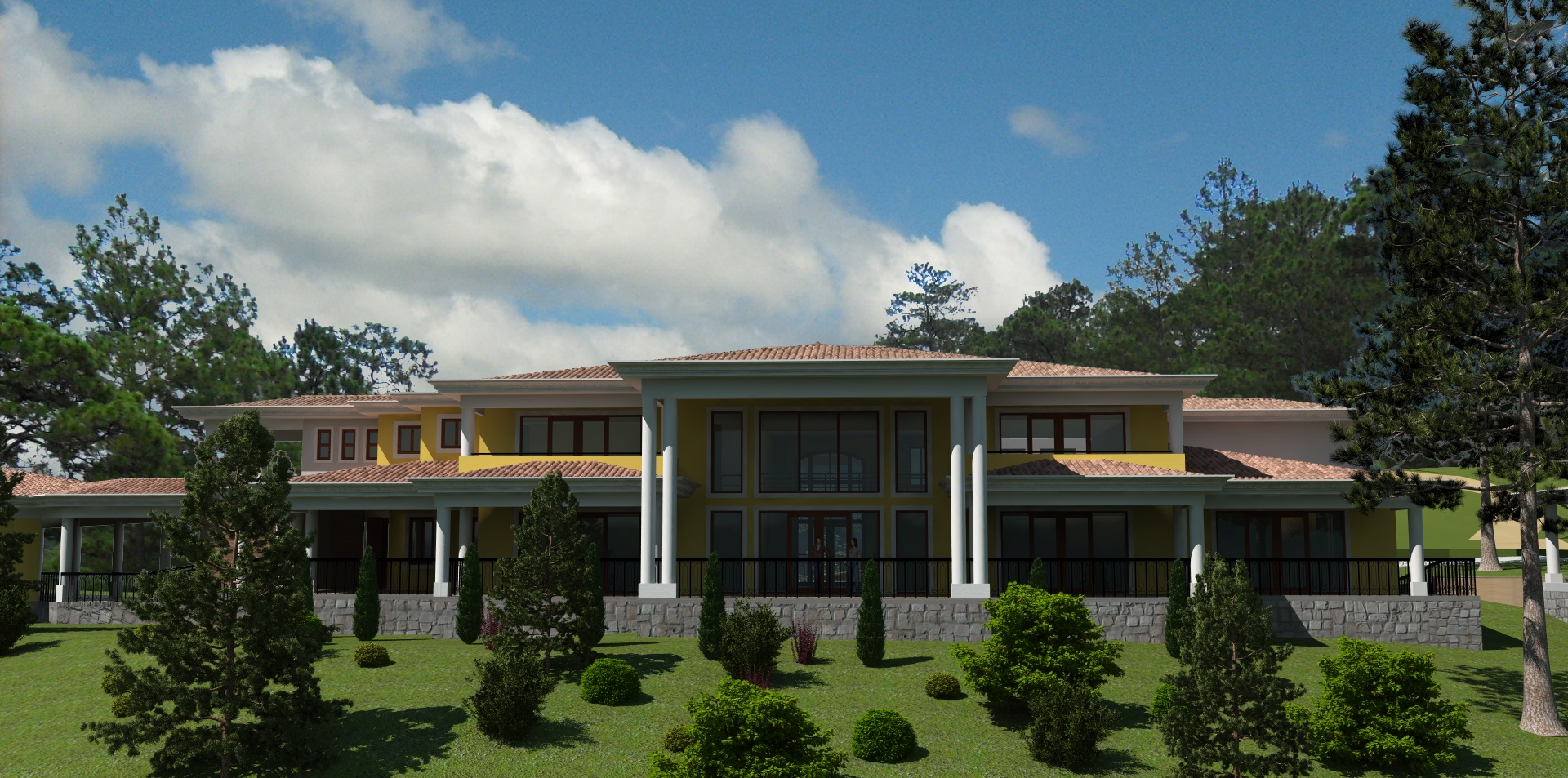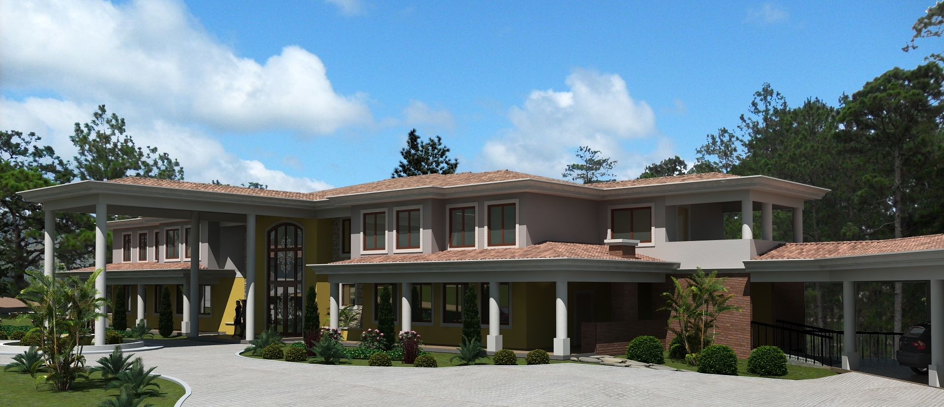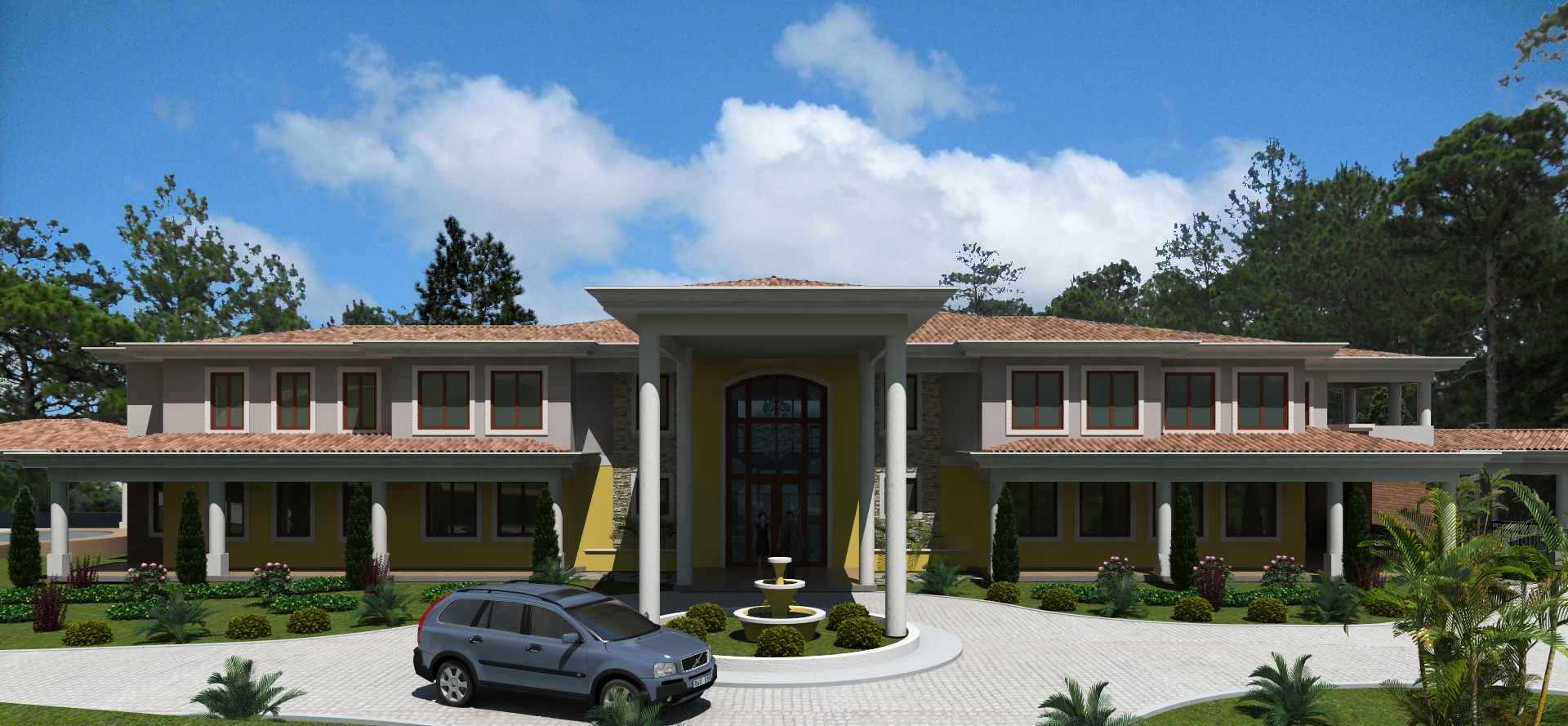 También sobre las exteriores, la disposición de la vegetación está muy geometrizada y eso hace que se vea como artificial. Esto es una opinión muy personal porque bien podría tratarse de un diseño de landscaping y no soy quién para criticarte eso, pero es la sensación que me da.