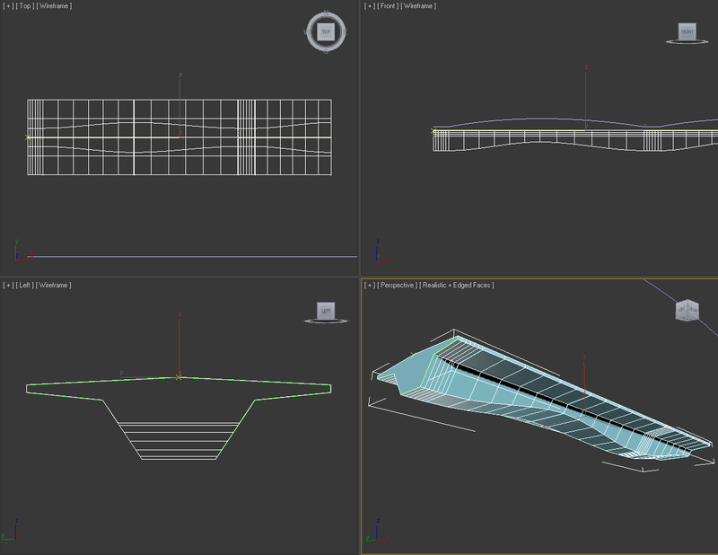 Muy buenas a todos. Estoy intentando modelar un puente viga de canto variable en 3dsMax y no me queda claro cual es la mejor forma de hacerlo. Pienso que lo ideal es hacer un objeto Loft, pero hay algunos detalles que se me escapan.