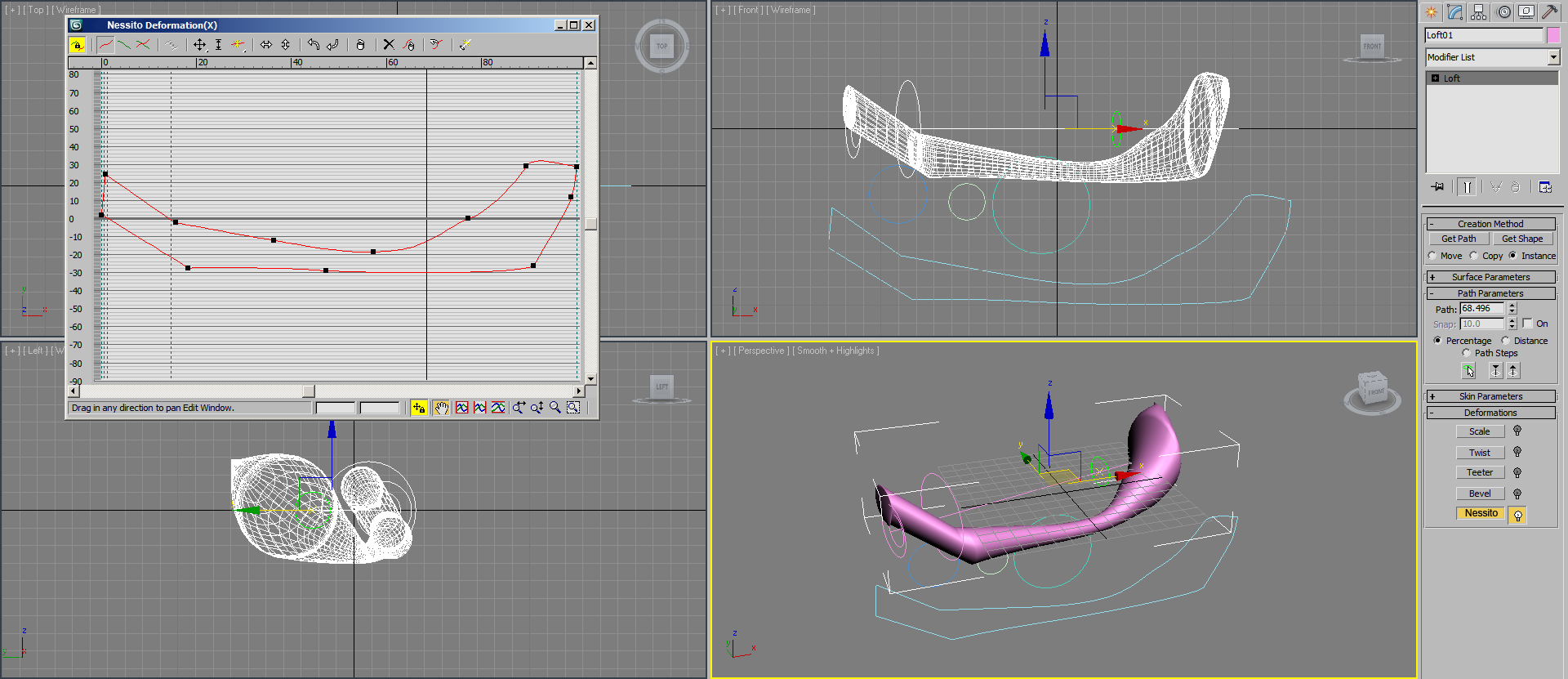 De las varias deformaciones que tiene un Loft en 3dsmax, casi nadie se acuerda del fit. Y merece la pena probarlo, claro que yo vengo de la época del ms-dos, y en aquel entonces esto era lo único que había.