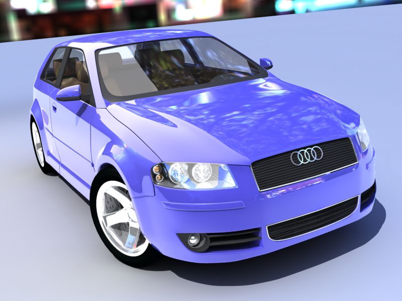 Y otro coche. Este es de un super tutorial que hay en 3d-Palace. Tengo que mejorar la textura, pero primero a terminar el Audi.