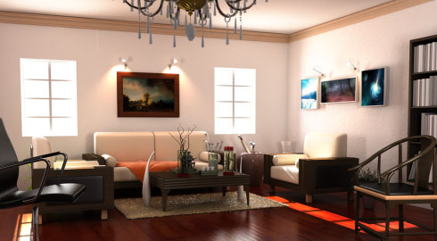 Hola goeciart. En principio no vas mal, pero ten en cuenta una cosa: Para conseguir el mayor realismo en el 3d, hay que tratar de buscar la imitación de la realidad, y para eso no solo hay que saber de modelado, también hay que colocar los objetos donde corresponde y de manera lógica. Te sobran jarrones en la mesa, sobre la alfombra, el cuadro de Lara Croft.
