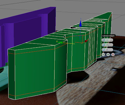 Si volvemos a activar el TurboSmooth (bombilla del lado) veremos que ahora un poco mejor pinta. Lo que tenemos que ir haciendo es colocar aristas a todos los puntos donde queremos que las aristas sean más duras, nos vamos ayudando activando y desactivando el TurboSmooth para ver cómo va cambiando el modelo: