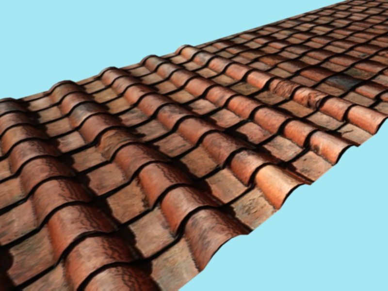 Lo que quise hacer al principio era: unas 4000 piezas de cerámica del tejado, ya que las tégulas de la época romana varían un poco de las actuales. Por eso mismo no quería utilizar una textura de tejado completo de nuestra época. Sigo pensando si existe otra posibilidad (seguro que sí, anda por ahí escondida en el universo de max), de mapear unas 50 piezas, por ejemplo, y luego esas coordenadas pasarlas aleatoriamente al resto del tejado.