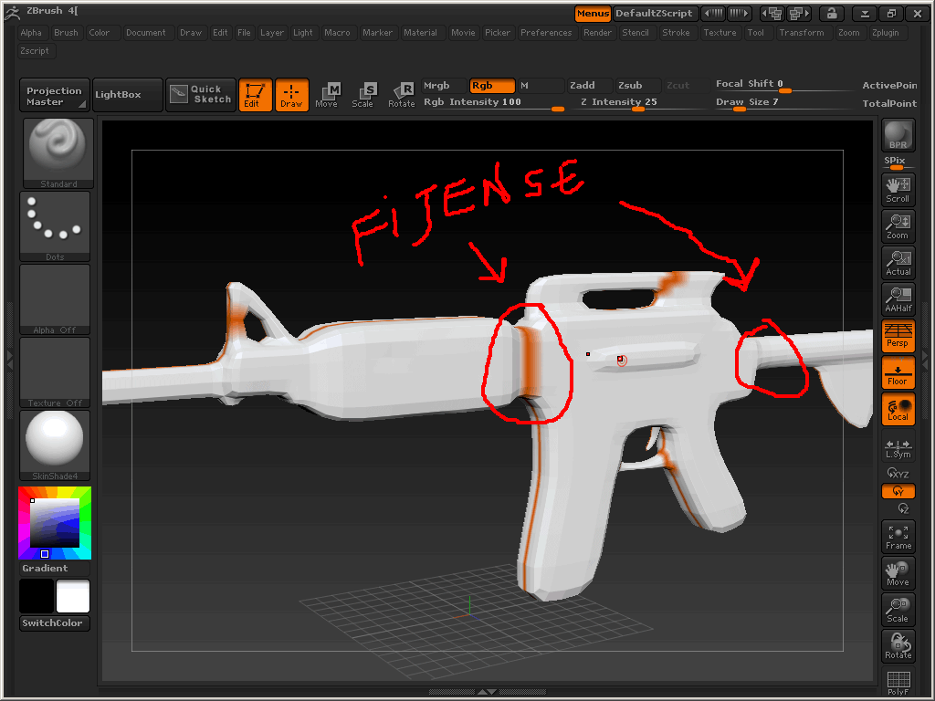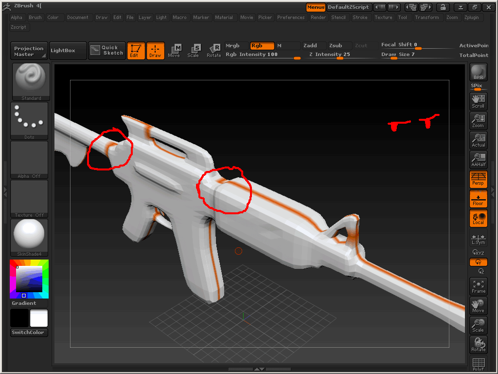 Encontré un buen tutorial donde explica bien, pero usa una cabeza como ejemplo y lo entendí ala perfección, pero en la metralleta es diferente.