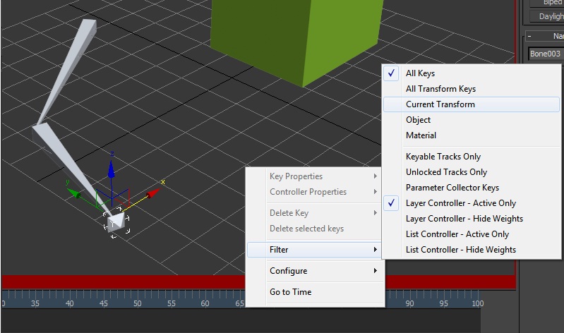 Hola qué tal, la verdad no he usado skin ni ningún otro modificador, simplemente tiro cualquier Bones sin ningún modificador y cuando estoy realizando las animaciones, las keys no me aparecen en la línea de tiempo.