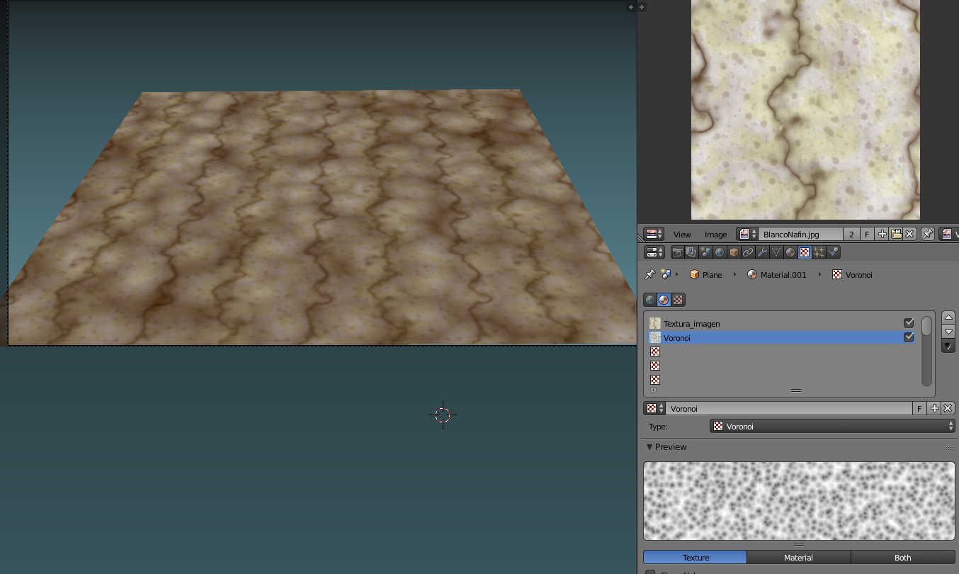 Y en la segunda se mezcla con otra textura Voronoi para qué no se note tanto esa repetición.