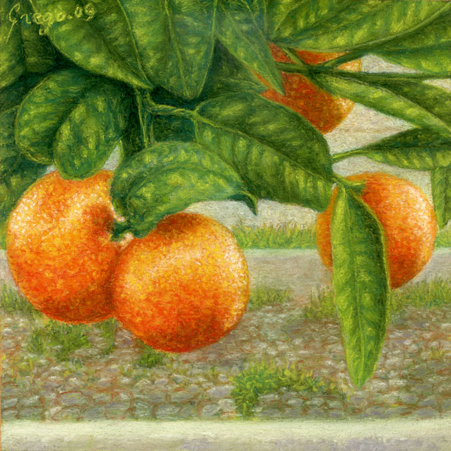Muy bonitas las naranjas, Gremil. Me gusta mucho cómo has dado los toques a las naranjas. Pero, estoy de acuerdo con los compañeros, tendrías que haber jugado más con los tonos de las hojas.