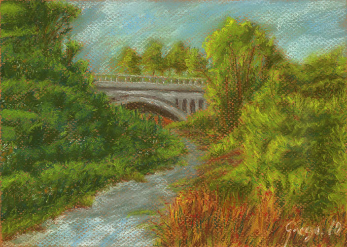 Una pintura in situ y otra de estudio. Puente de tales - Pastel 25x18 cm. Experiencia - Pastel 36 por 27,5 cm.