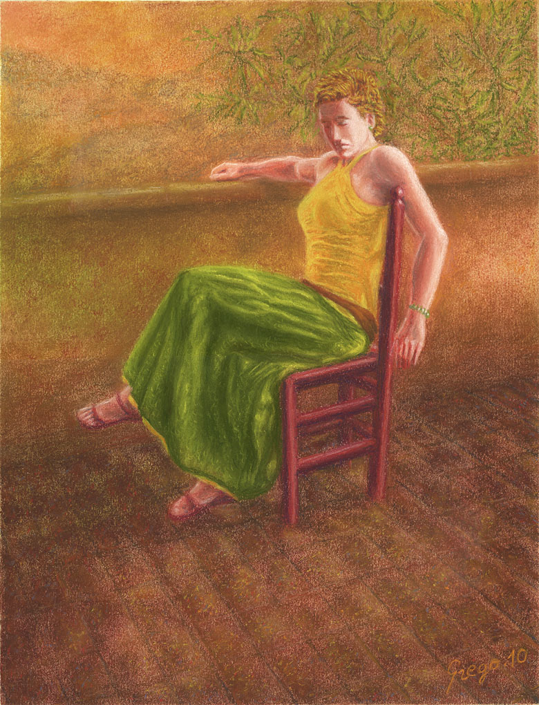 Y en el 2º, si la chica tiene esa marcada luz en cara y hombros, eso debería traducirse también en el entorno: muro, silla, y sobre todo en el suelo, incluso el árbol de fondo debería tener matiz lumínico.
