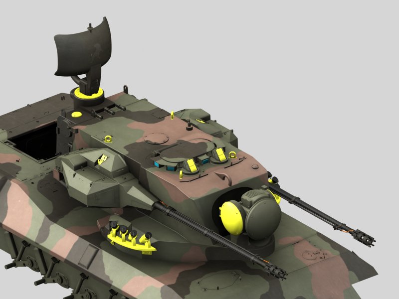 Así que con cascarrios modernos ¿eh? Aquí os dejo la torreta ya camuflada del todo, falta colorear de negro algunos fumígenos y dar el color final a otras partes como el explusor de las vainas, pero asignado ya está todo.