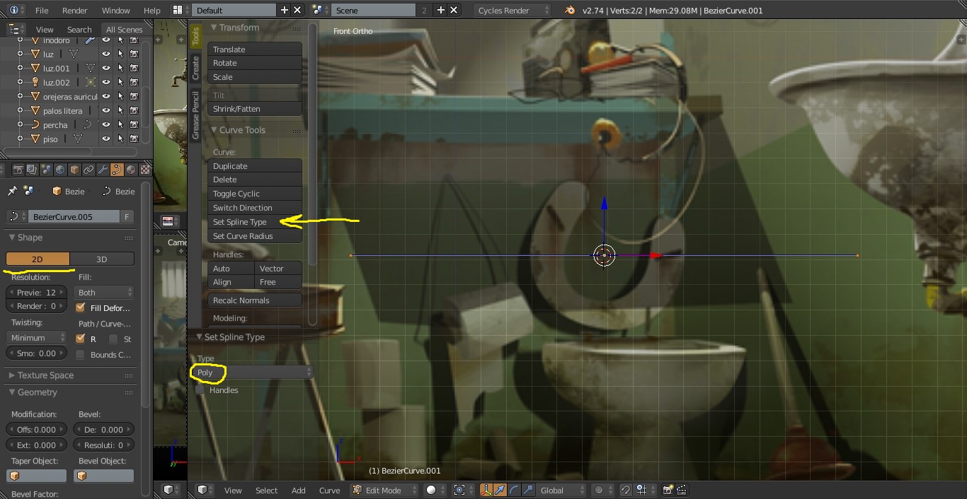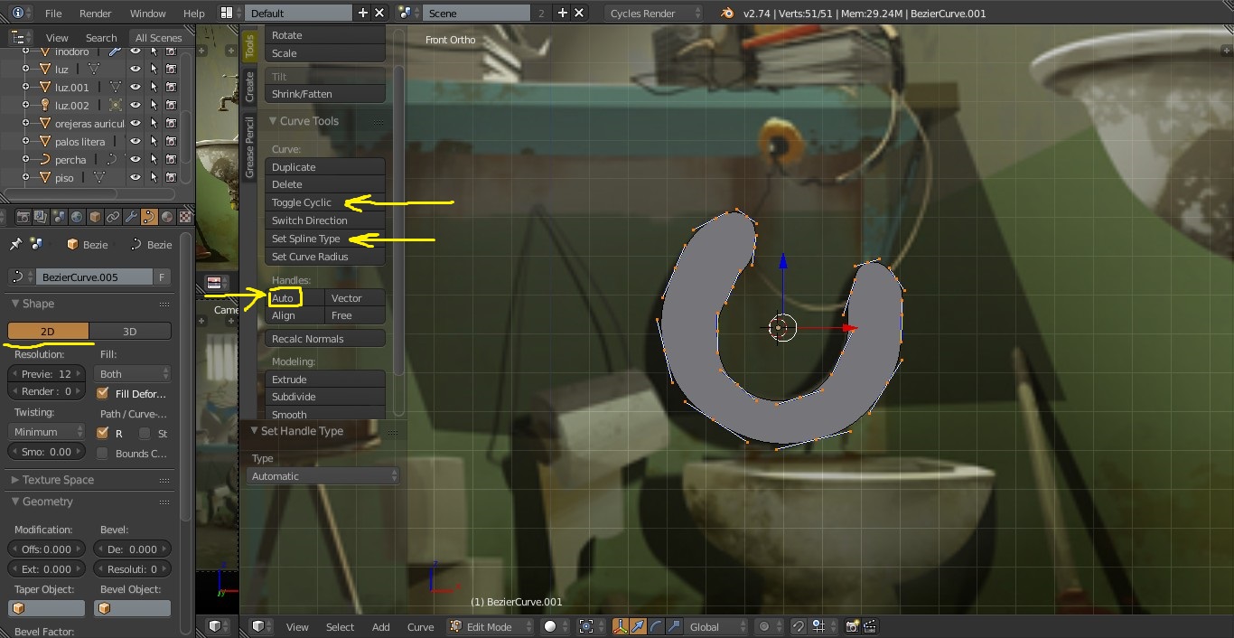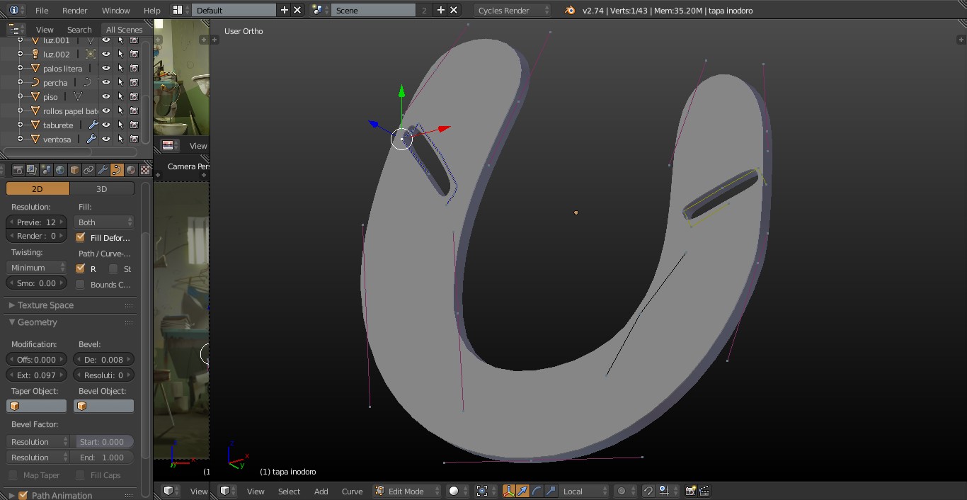 [QUOTE=Limite;928098]Te vas metiendo también en los escenarios (con lo complicado que es organizar todos los elementos de la escena) y te vas superando. No sé cómo has hecho la tapa del inodoro, pero podrías hacerla fácilmente con una curva Bézier y los agujeros (creo que los tiene) seria añadir más curvas Bézier y automáticamente te hace los agujeros.