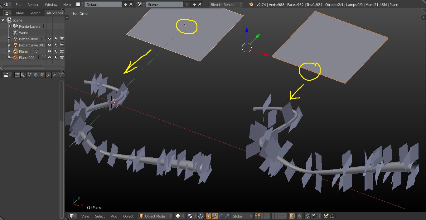 Bueno os dejo un avance y una pregunta, estoy intentando hacer una especie de parra o hiedra y he usado partículas para integrar las hojas alrededor de una malla, el problema está en que la malla pasa por en centro de las hojas, por lo que no queda muy bien que digamos, he intentado desplazarlas con las opciones de las partículas, pero no lo he conseguido. Un saludo.