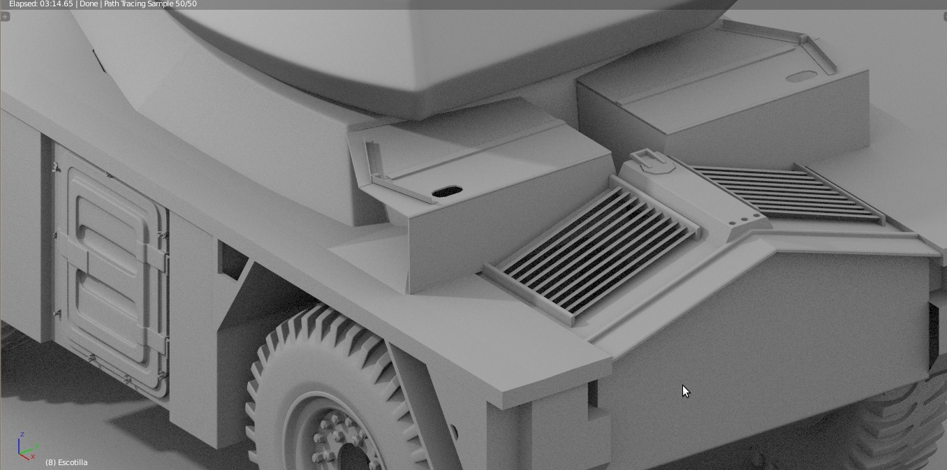 Hola chicos mucho ánimo con el trabajo. Aquí les dejo una imagen de lo adelantado. Y el enlace, para que se puedan orientar en la forma de modelar la torreta y los protectores de la parte trasera.