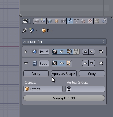 Para poder usar el lattice primero debes agregar un objeto de este tipo. Y luego en el caucho o neumático haces referencia a lattice que anteriormente creaste. Si no haces referencia a él. El modificador no tiene sobre quien realizar la acción. Saludos cordiales.