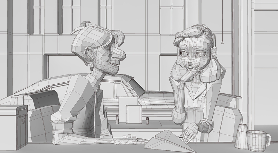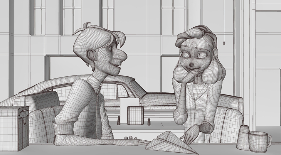 El trabajo de Guillermo muy bueno, impresionante la verdad, tiene una ambientación muy bien conseguida, la construcción de la escena muy buena, la iluminación el render, posproducción, los shaders muy logrados, sobre todo el suelo, si eso va bien de frames es un curre muy profesional, tiene algunas cosas que comentar como algún flickeo en el efecto del saft de la luz, pero bueno, se arregla fácil, En el efecto del primer fuego que se ve saliendo de la ventana, se ve como nace la partícula, en este tipo de efectos, fuegos humos polvo etc, es mejor empezar con el alpha a cero y en muy poco aumentarlo, 0.10 0.15 segundos o así, lo que le metas en esto se lo metes en el tiempo de vida así no acortas el efecto, también es bueno modificar cómo se ordenan la partículas, en estos casos es mejor decirle que predominen las antiguas, así las que nacen se verán ocultas por las que ya han nacido, además, aunque el coste aumente un poco te libras de problemas de flickeo en la distancia, también para evitar que se noten patrones es bueno hacer que nazcan en un volumen en vez de en un punto cómo se hace por defecto, igual le puede venir bien aumentar el número de partículas y forzar la intensidad del alpha con scalecolor time, el Shader tendría que tener depth bias alpha, para qué no se noten los cortes cuando la partícula interseca con otro objeto, a ver esto son pijadas que aprendes en dos días, el efecto esta de lujo.