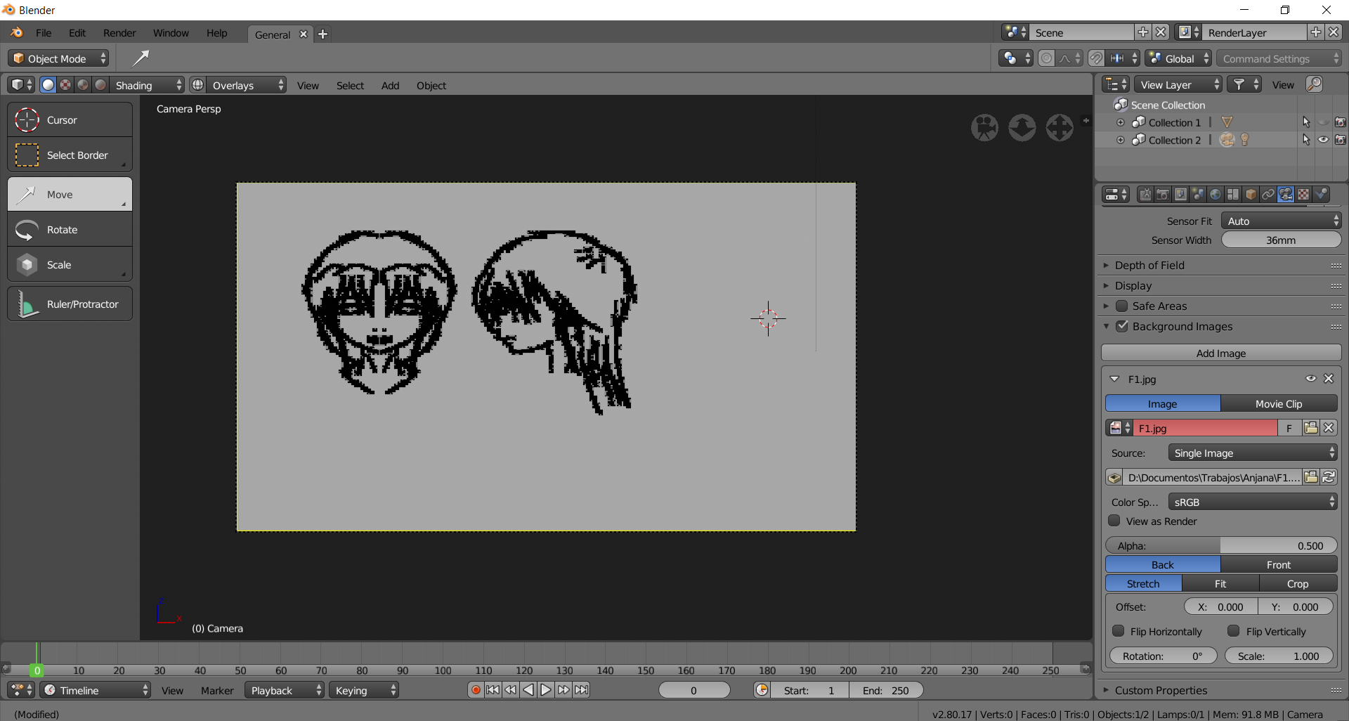 Y ahe encontrado la opción de poner las imágenes de fondo :/ Están en la cámara, lo que me parece un sin sentido y bastante incómodo. ¿Hay alguna otra forma de poner una imagen de referencia para modelar? Añado también que se ven horribles (vale, hay que marcar la opción Front para que no se vea así).