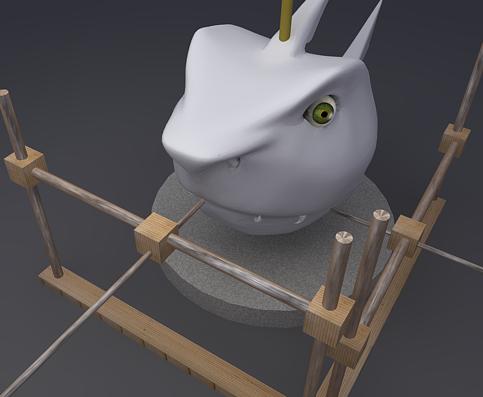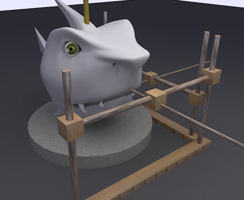 Efectivamente, con tu sistema gana rigidez el asunto, pero estoy pensando que el aparato estorbaría a la hora de trabajar el barro, y por otra parte si la base es giratoria, creo que perderías las referencias. El secreto es que el modelo no se mueva en ningún momento desde el principio.