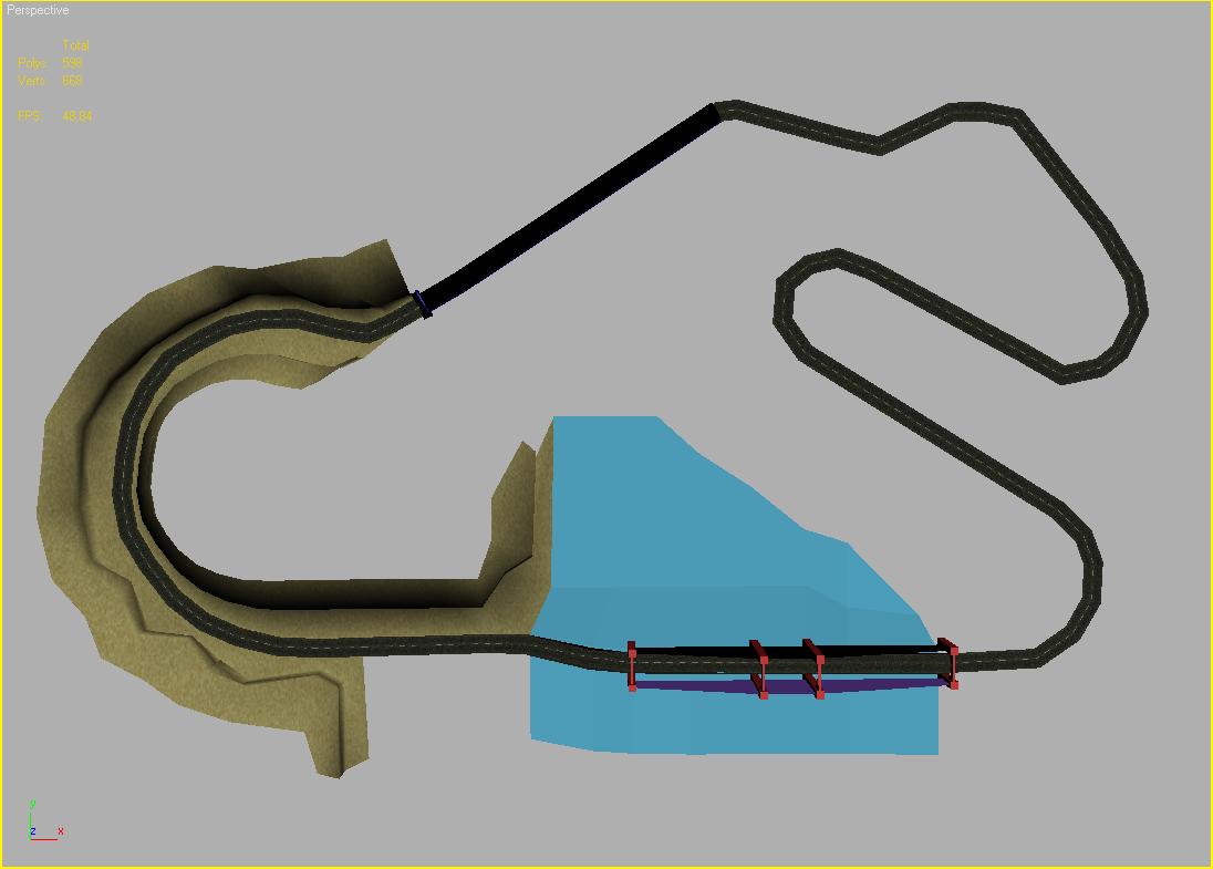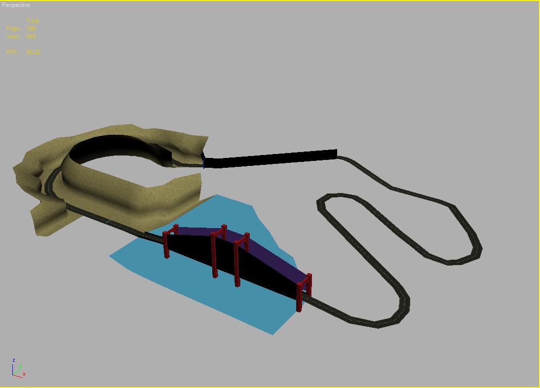 Ale, menos discutir y más modelar. Circuito (localización espacio temporal al gusto del consumidor), 20 Kb, texturas (*.png) de 512 por 512 máximo, skybox, túnel y puente. Ar.