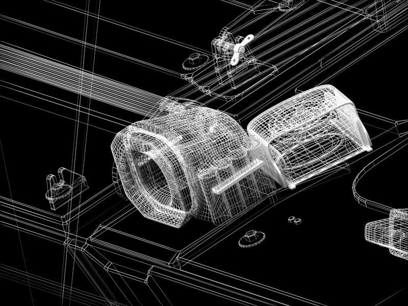 Ese carchofo de en medio con tornillos arriba, lo quería modelar de una tacada, lleva un boquete interno muy suavizado para que corra el cable que pasa por la polea de detrás.