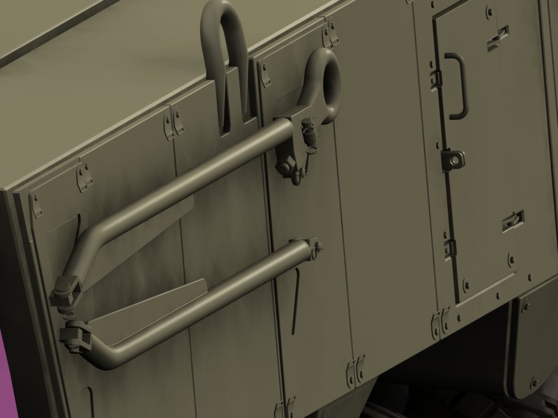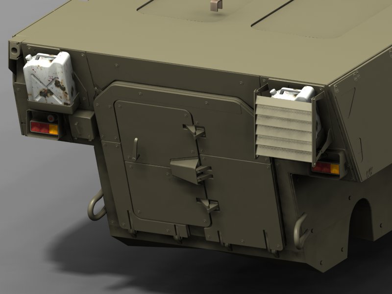 Tu pide por esa boquita. Algunas no las he modelado yo, suelo buscar por las librerías gratuitas de modelos o me las han cedido simplemente, otras las he modelado yo. Por ejemplo, no he modelado ninguna pala o ningún jerrycan. El pico sí, lo hice para el BMR. Y ya que hablo de BMR, éste vehículos es el predecesor del BMR y al ser una filial de general dynamics que también lo es sta. Barbara, digamos que las bisagras y cierres son muy comunes entre éste modelo, el Piraña y el BMR, así que, con coger una manivela de uno y ponérsela al otro.Cita: