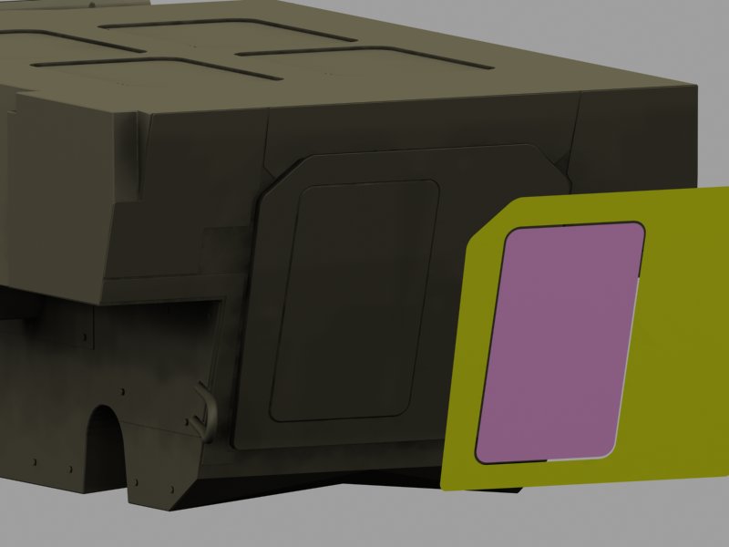 Es decir, consta de una trasera, de su blindaje, de un portón abatible en rampa, de su blindaje, de una puerta para salir de uno en uno, y de su blindaje. Total, muchas cajas y bisagras. Luego todo eso ira casi tapado por más cajas, bisagras, manivelas, tornillos, luces, soportes, antirpgs y unos bonitos jerrycans. Ah, y otro de pieza de esa por la que pasa la otra parte del cable, ésta vez con el cable dentro.