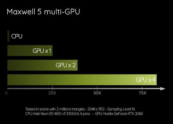 Además, Maxwell GPU, el motor de procesamiento de GPU basado en CUDA introdujo Maxwell 4.0, ahora es compatible con varias GPU, para una aceleración de más de 50 veces en comparación con una CPU de gama alta.