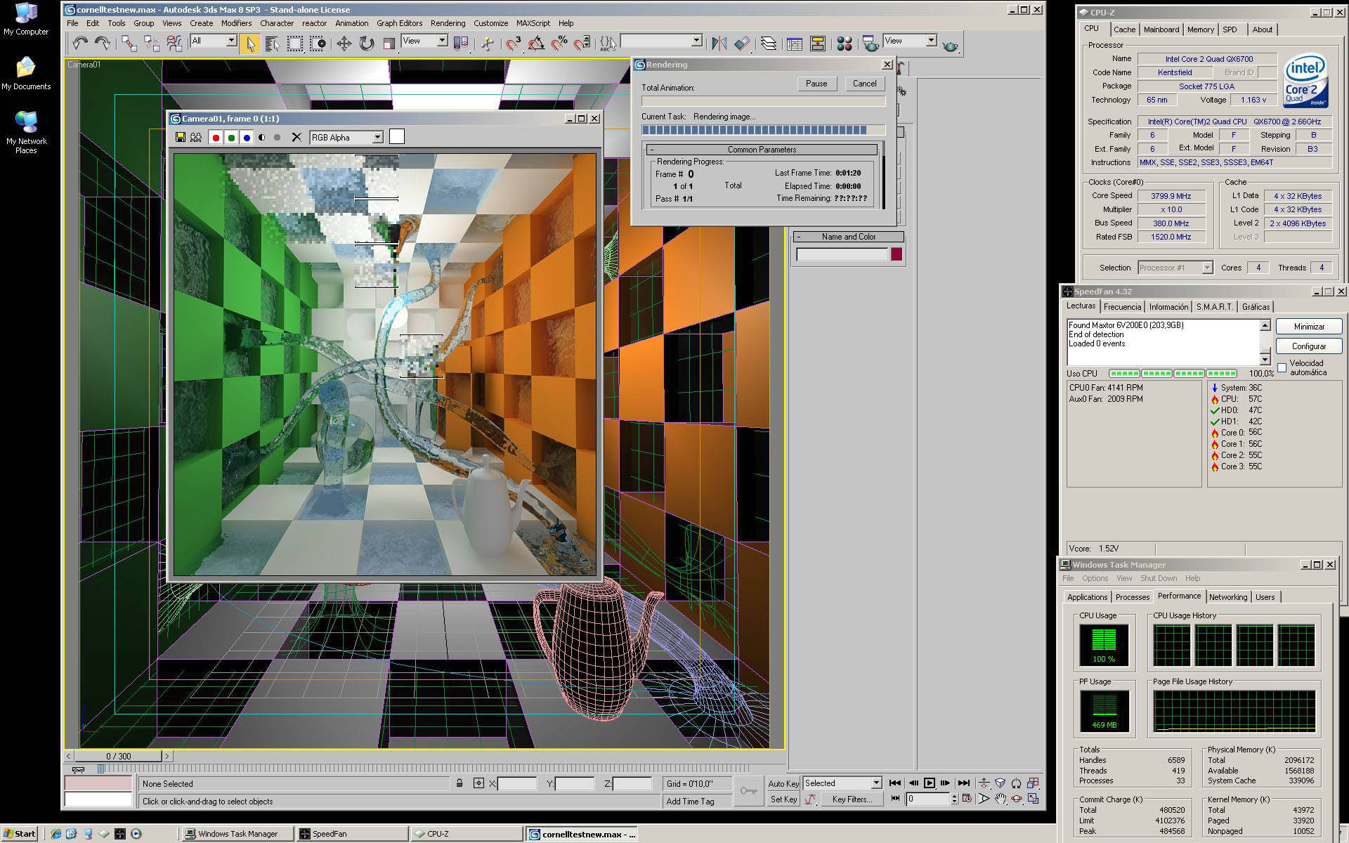 Captura de pantalla durante el render, con cpu-z y spedfan.