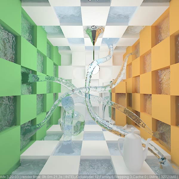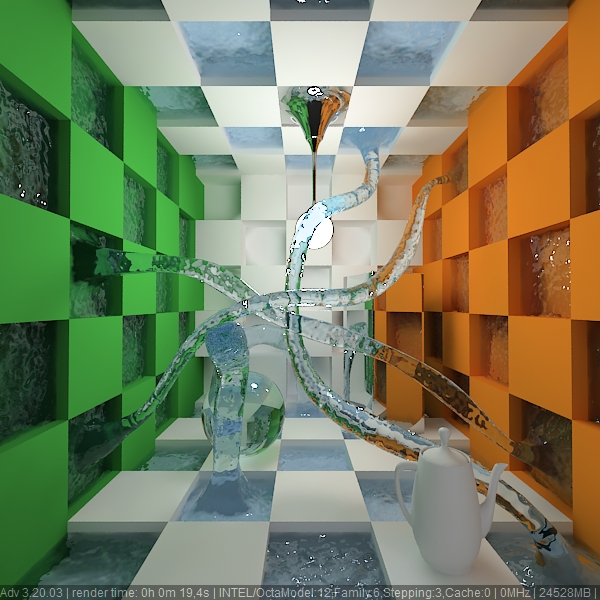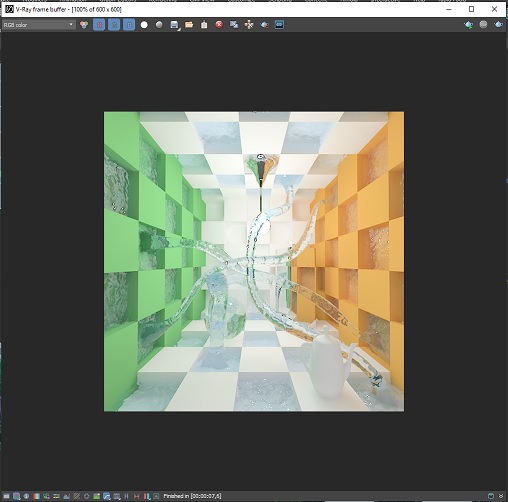 Ahora sí, ya no aparece deslavado. 19,4 segundos. El V-ray 3.20 es muy potente.