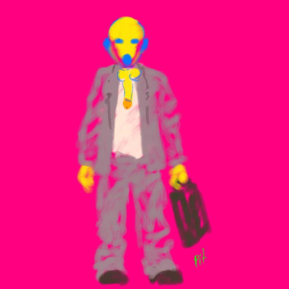 Es que el tío, me da la impresión de que el pobre se ha roto las piernas y le cuelgan con hilos o algo así. He intentado dibujarle un suelo en perspectiva, pero ni aun así.