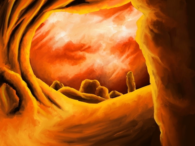 Bueno. He aquí otra prueba que he hecho con Painter. Empezó siendo una caverna de hielo con ventisca, en plan Ice Age, y terminó siendo una cueva en el infierno. Cosas que tiene la imaginación.