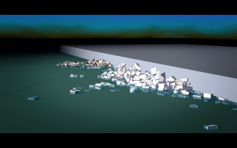 Ah entonces vale, pero para hacerlo más realista porque no coges directamente trozos de las chimeneas las destartalas y las tiras al agua. Además, te sugeriría (si se me permite) que hagas basura de distinto tamaño y forma.