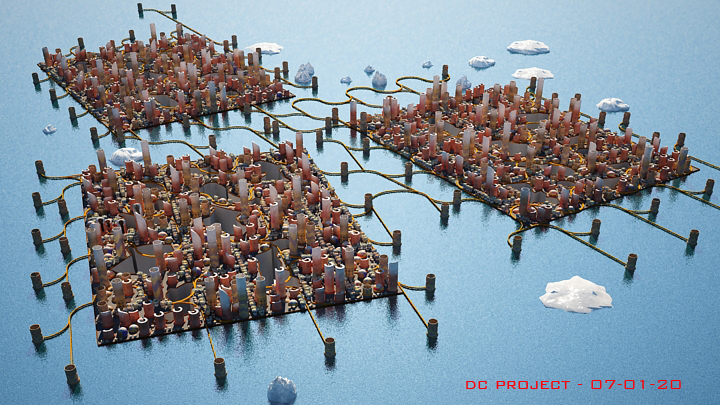 El modelo con las escombreras. Dep city es una ciudad subterránea emplazada a orillas de lo poco que queda del océano atlántico, a unos 400 km de la actual Nueva York. Estamos en el 3015. El mundo está congelado, y Deep City busca el calor de la tierra.