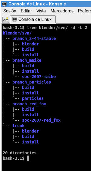 El primer nivel, Blender/svn/branch_tal_tal_tal, son directorios que he creado yo.