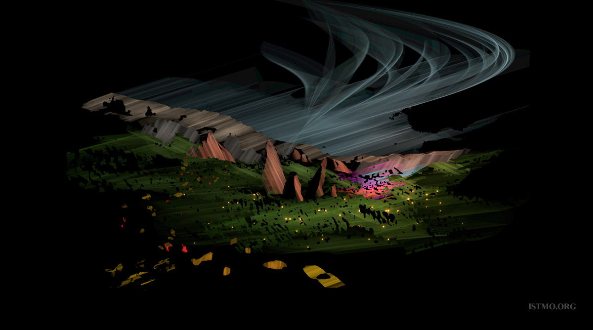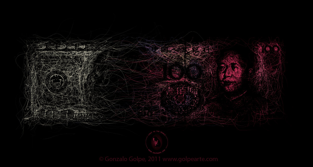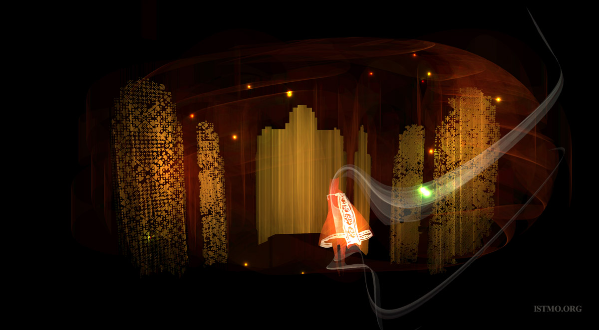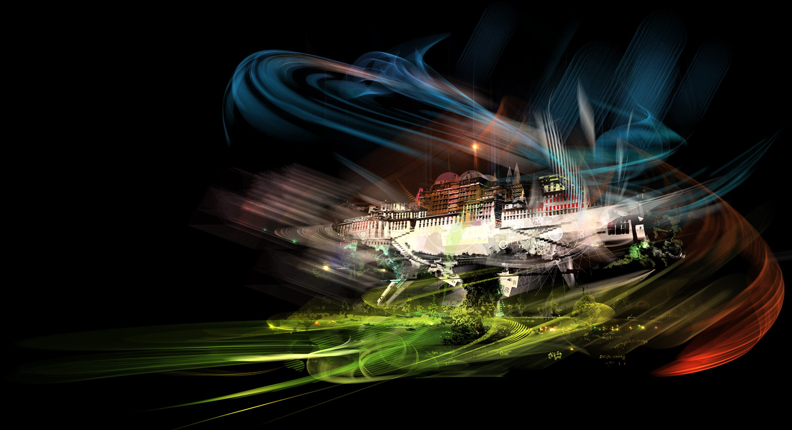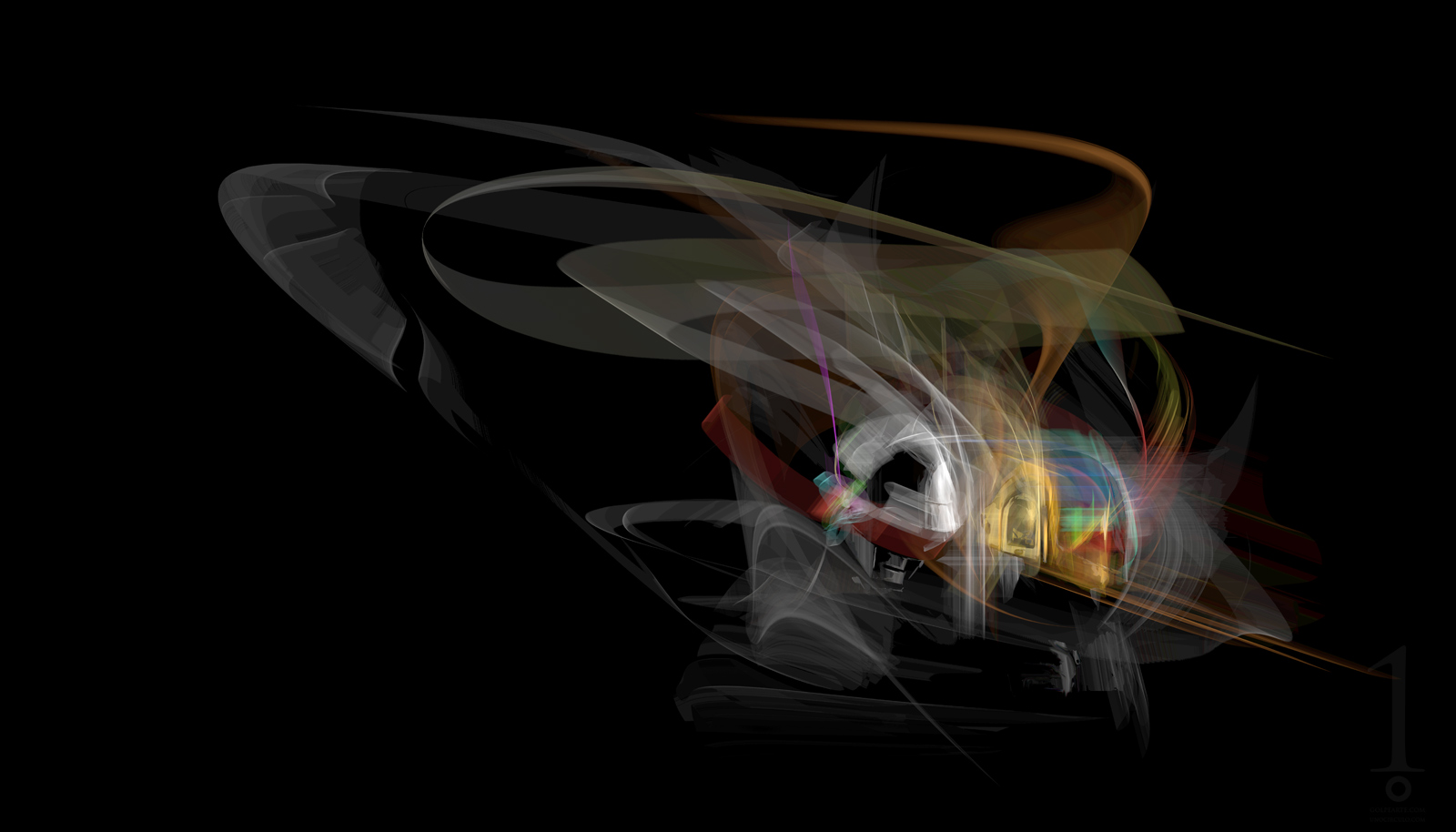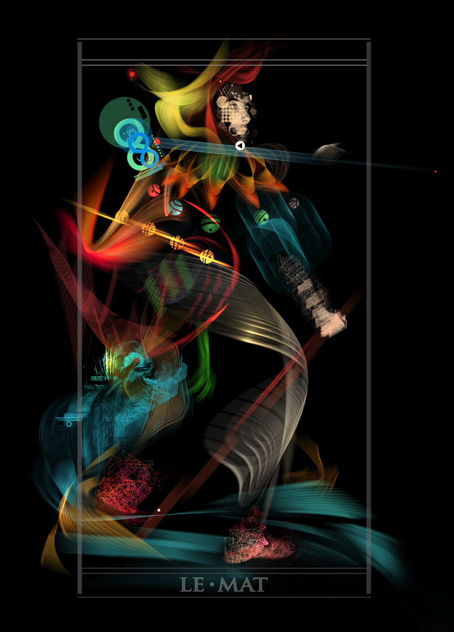 Con respecto a estos trabajos (ahora me refiero a los que hago), creo que no lo había comentado, está la idea de la conexión, comunicación con todos y todo. El primer trabajo que hice de este tipo fue una escultura conceptual hace, creo que 12 o 13 años, donde las partes de un cuerpo estaban esparcidas por el suelo y unidas todas como por un cable ondulante. Luego hice una obra en un lienzo donde una bailarina echa por líneas bailaba en un escenario de fondo negro. Y luego otras obras más y después, en 2003, fue cuando comencé a pintar con el ordenador. Es curioso cómo lo que haces ahora y te sientes cómodo es como si ya lo hubieses hecho siempre, por decirlo de alguna forma.