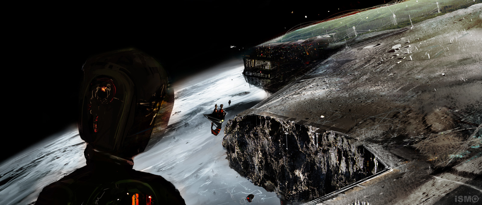 Y ahora, otro más. Esta vez de una escena donde se ve lo que podría ser una civilización avanzada cuya tecnología les permite modificar asteroides, lunas, etc para crear nuevos mundos. La semana que viene, supongo, haré un vídeo de cómo llegué a este trabajo, que pienso que fue curioso el camino.