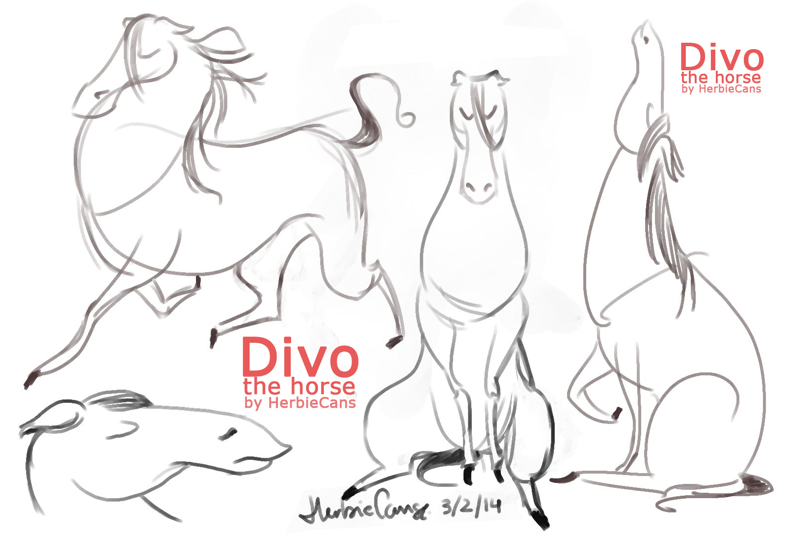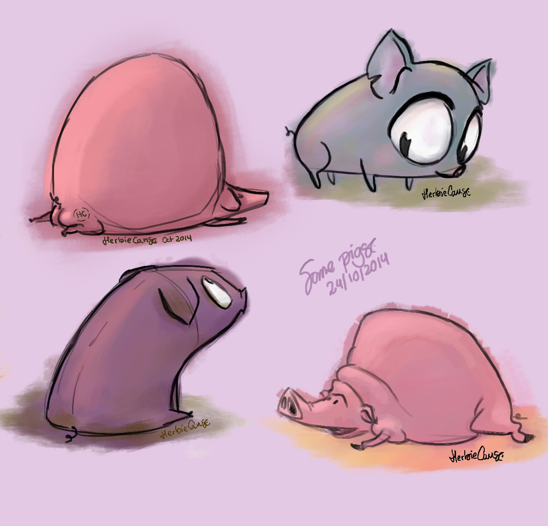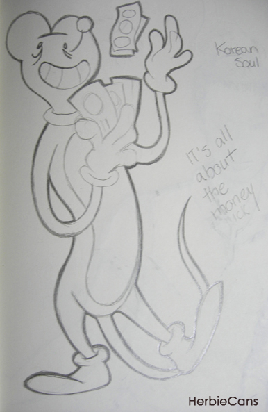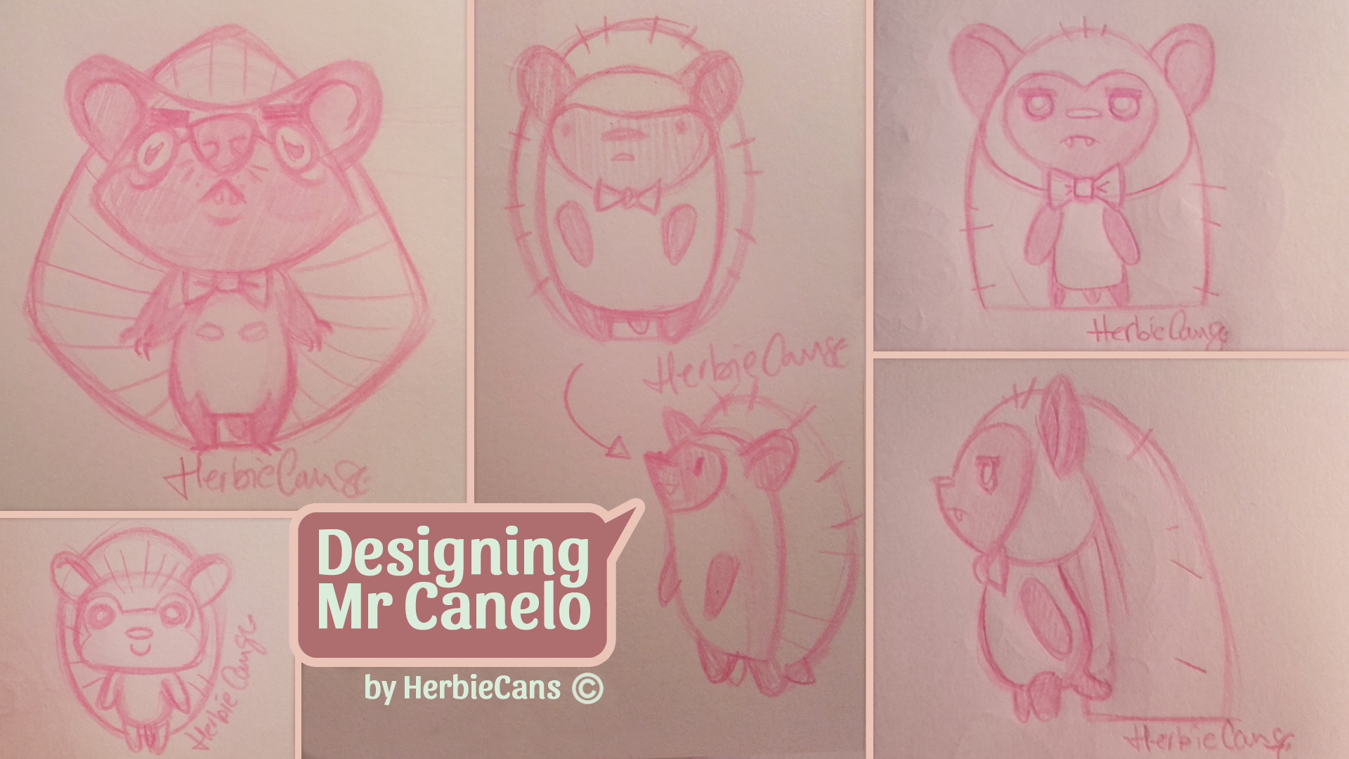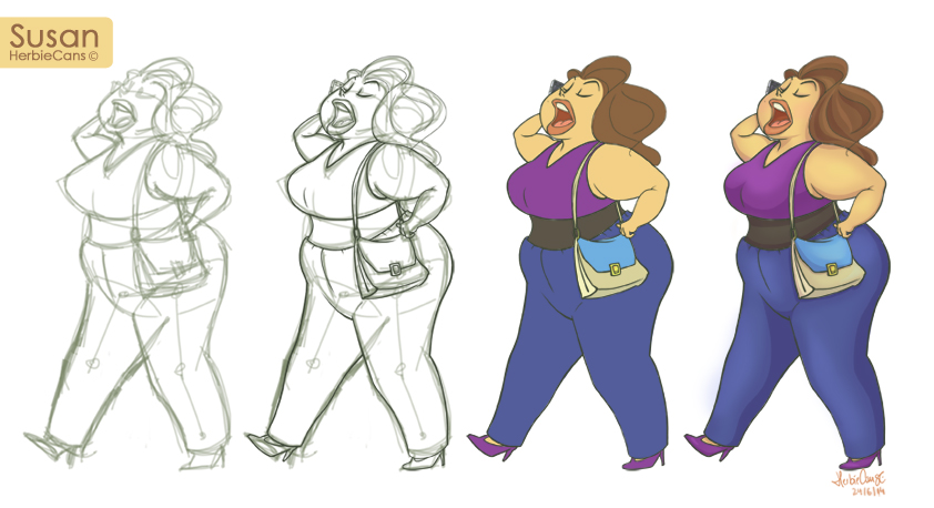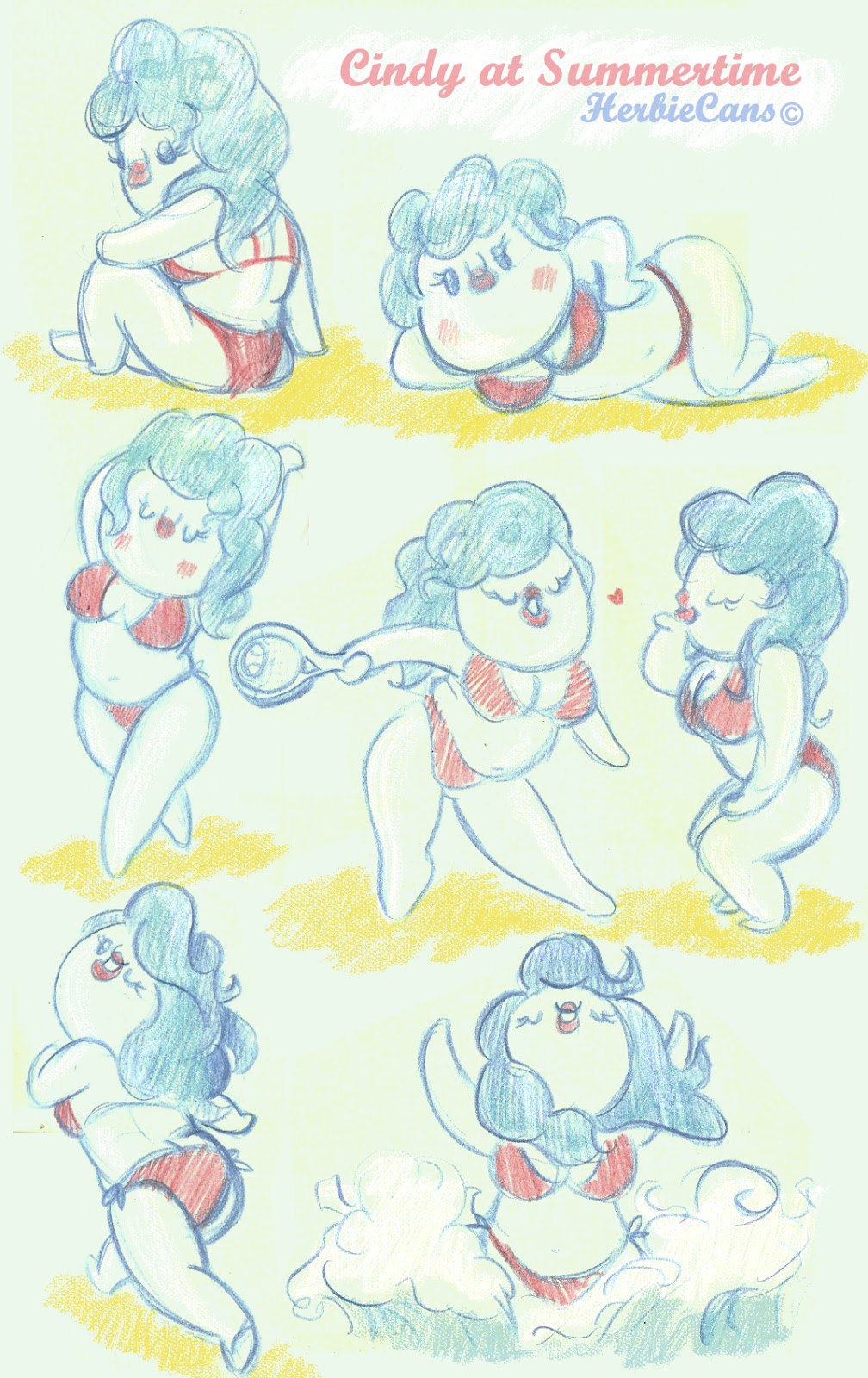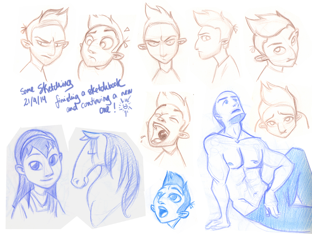 Ya que estoy, voy a subir un personaje que hice ayer. ¿Les parece que en limpio ha perdido? El boceto es más sencillo y he traducido algunas formas de manera diferente en el limpio. Por ejemplo, la pose inferior central en el boceto tiene los ojos simplemente redondos y las orejas hacia arriba. En el limpio, le metí un squash a los ojos y puse las orejas hacia abajo para favorecer la expresión, pero no sé, la sencillez del boceto le da un toque ingenuo que me llama más.