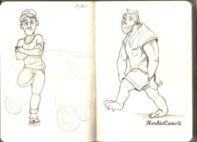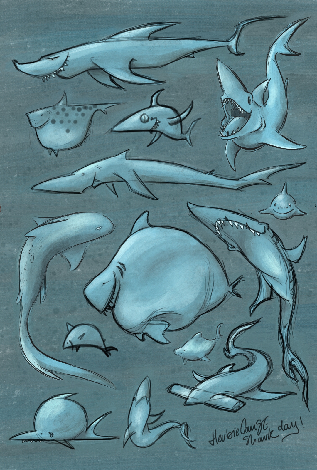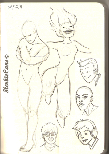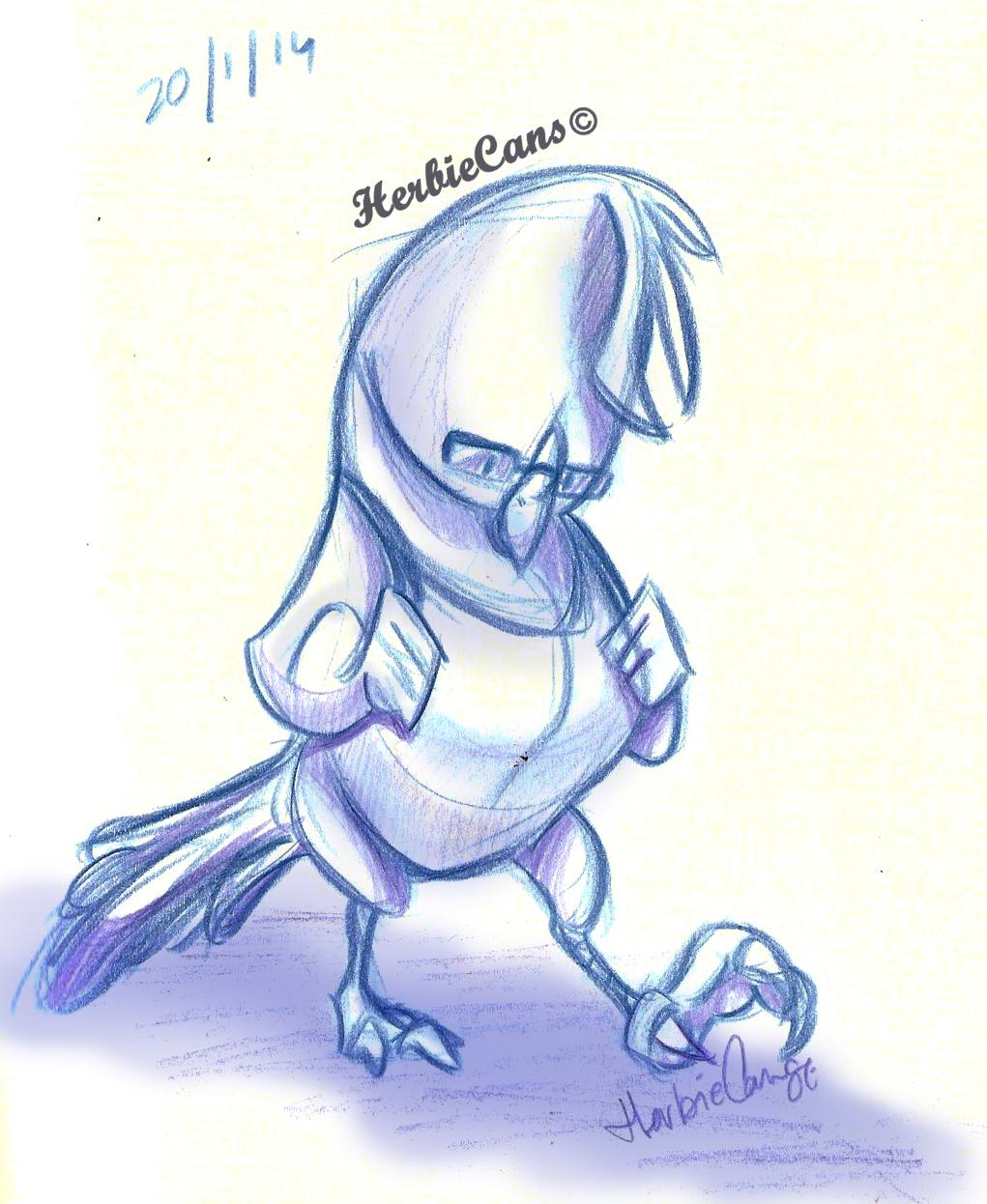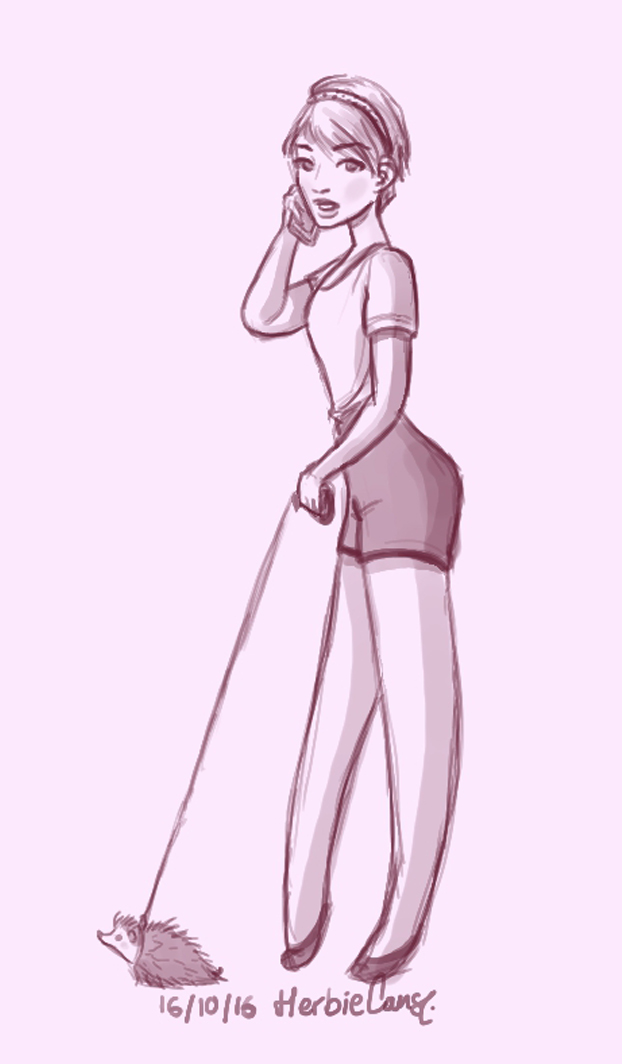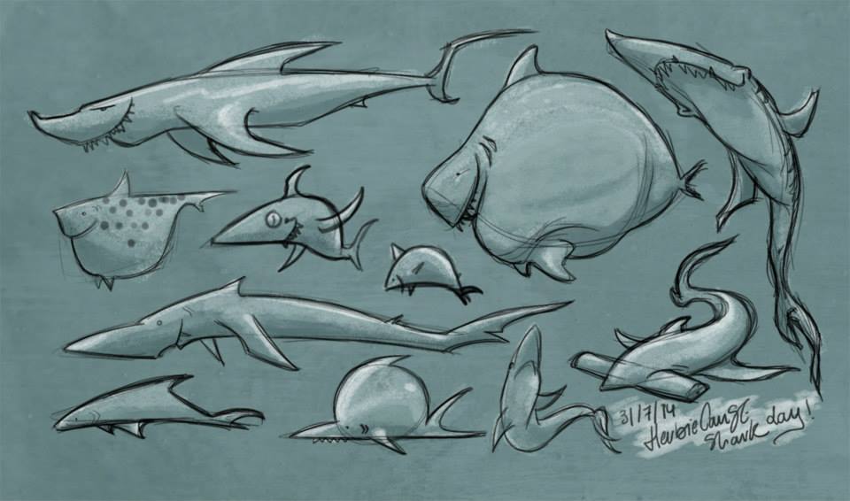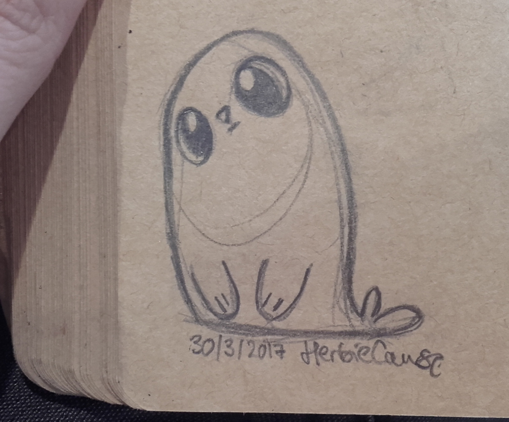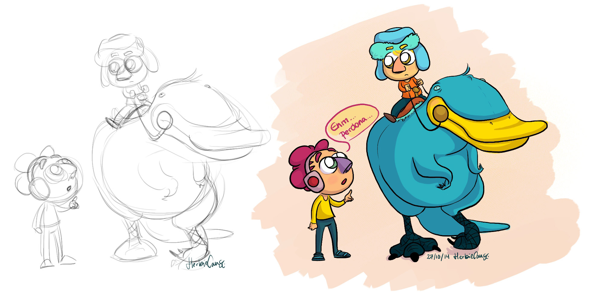 Ya que estoy, voy a subir un personaje que hice ayer. ¿Les parece que en limpio ha perdido? El boceto es más sencillo y he traducido algunas formas de manera diferente en el limpio. Por ejemplo, la pose inferior central en el boceto tiene los ojos simplemente redondos y las orejas hacia arriba. En el limpio, le metí un squash a los ojos y puse las orejas hacia abajo para favorecer la expresión, pero no sé, la sencillez del boceto le da un toque ingenuo que me llama más.