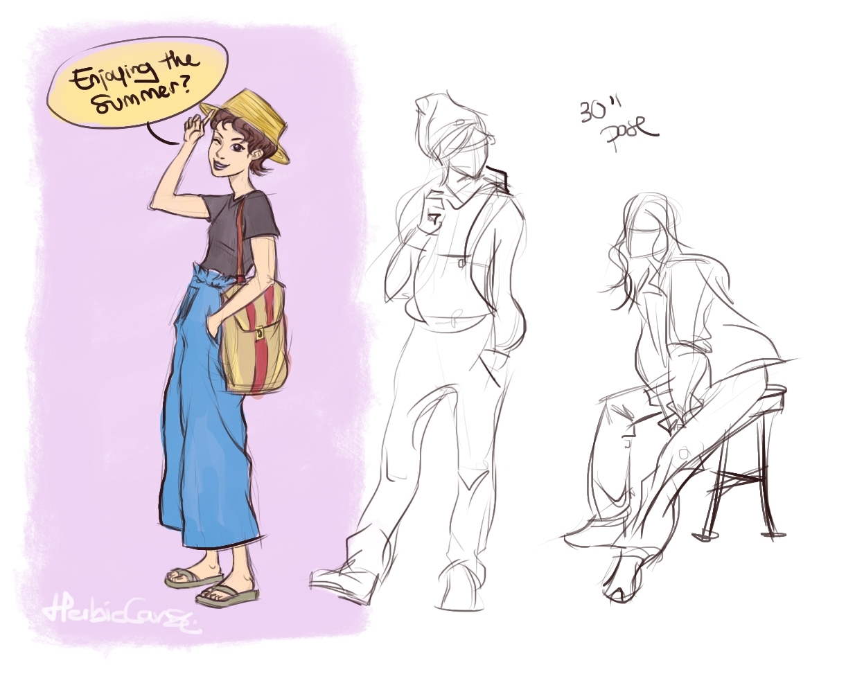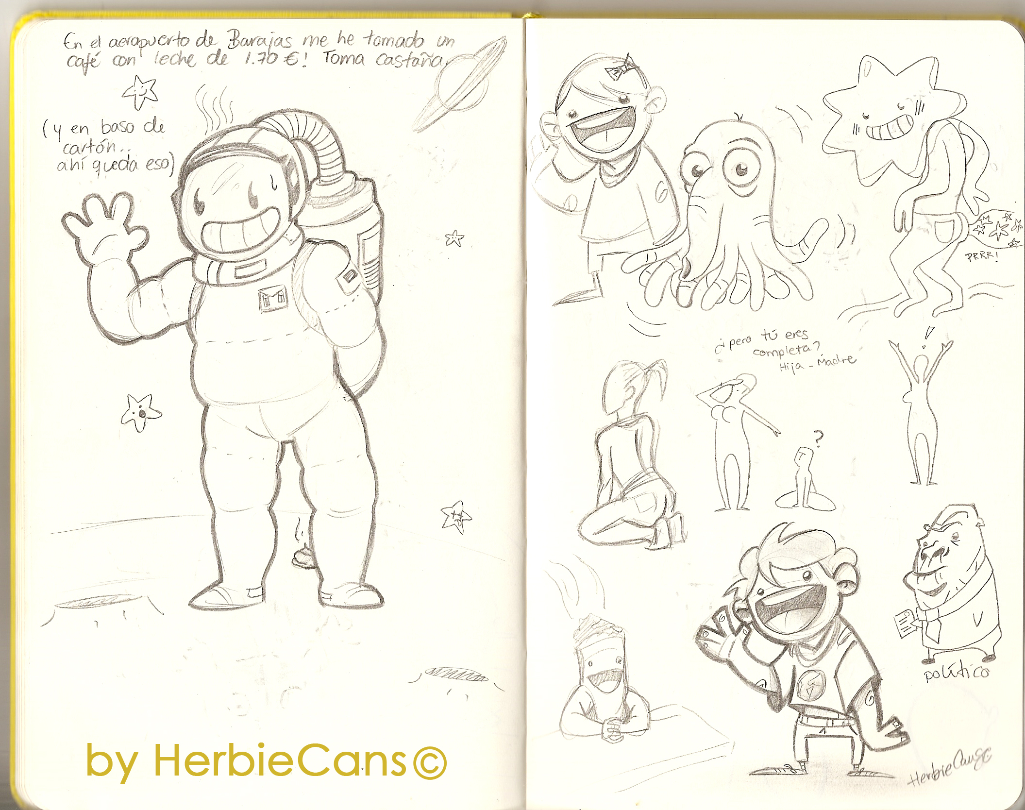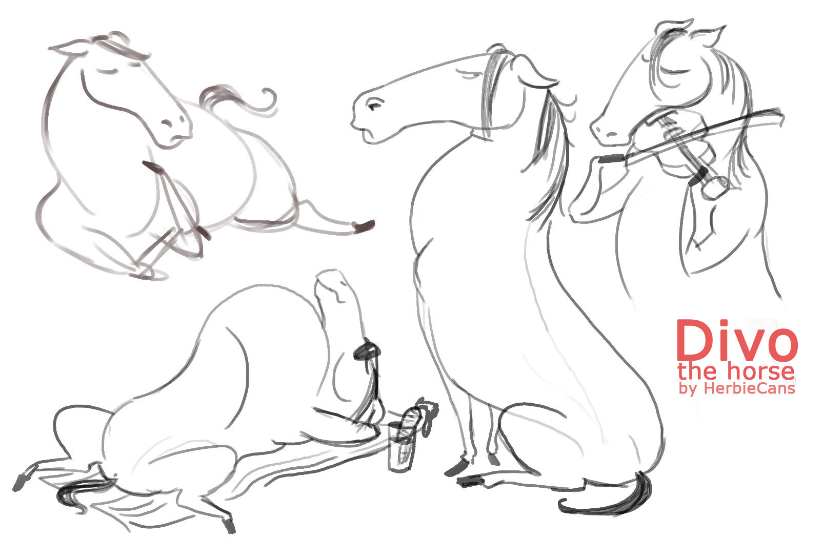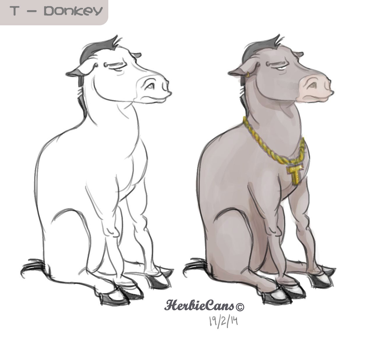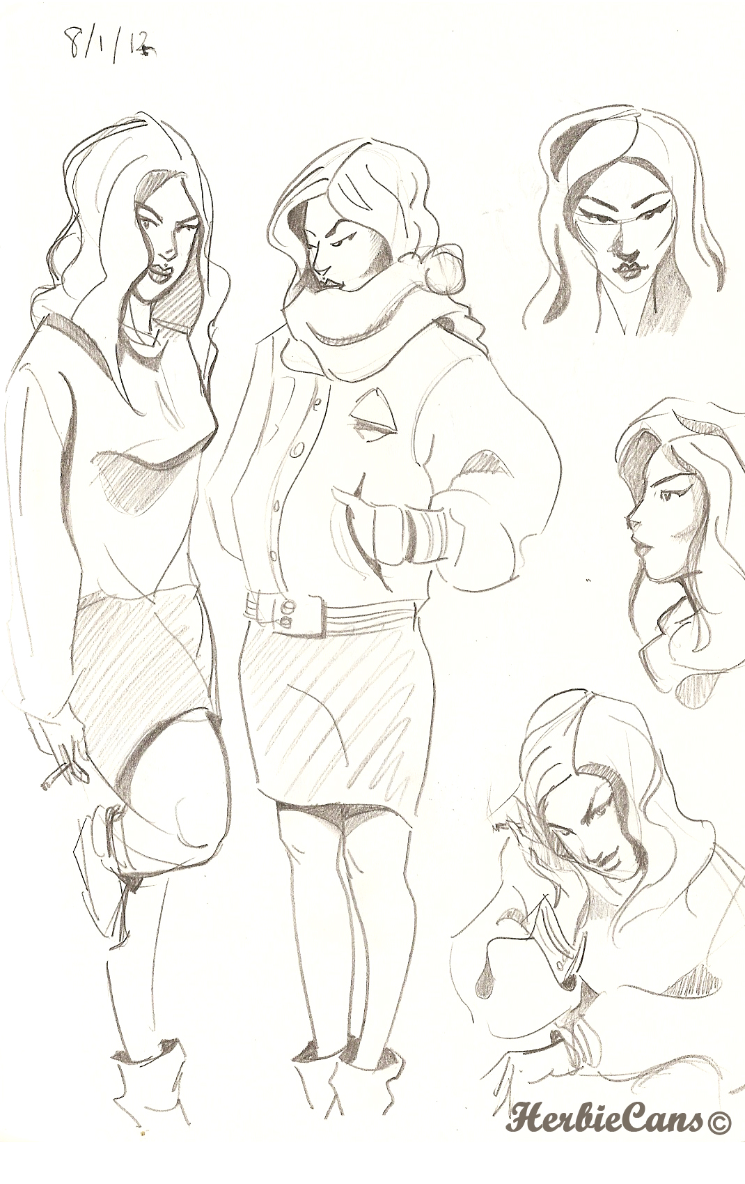 Ya que estoy, voy a subir un personaje que hice ayer. ¿Les parece que en limpio ha perdido? El boceto es más sencillo y he traducido algunas formas de manera diferente en el limpio. Por ejemplo, la pose inferior central en el boceto tiene los ojos simplemente redondos y las orejas hacia arriba. En el limpio, le metí un squash a los ojos y puse las orejas hacia abajo para favorecer la expresión, pero no sé, la sencillez del boceto le da un toque ingenuo que me llama más.