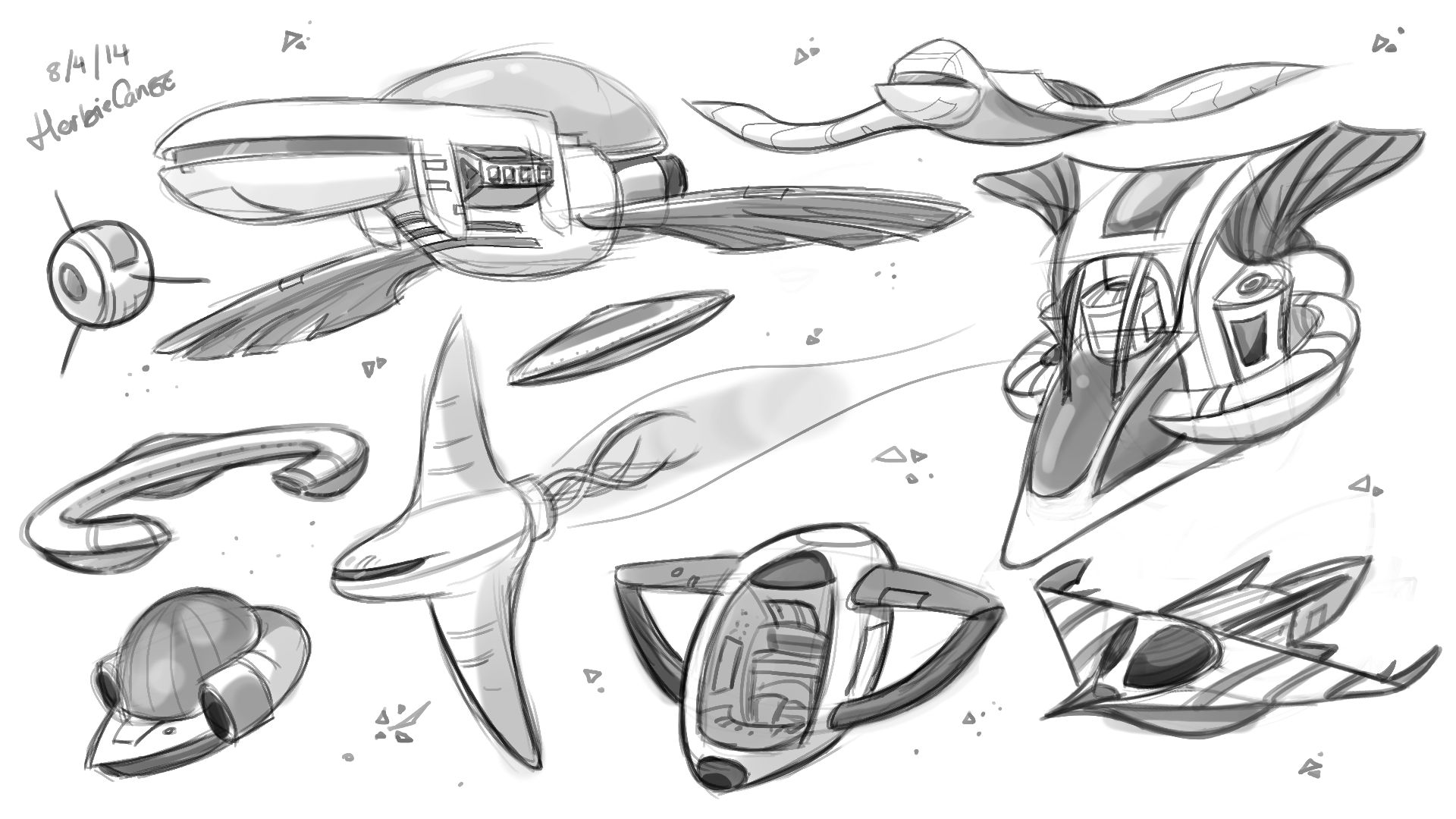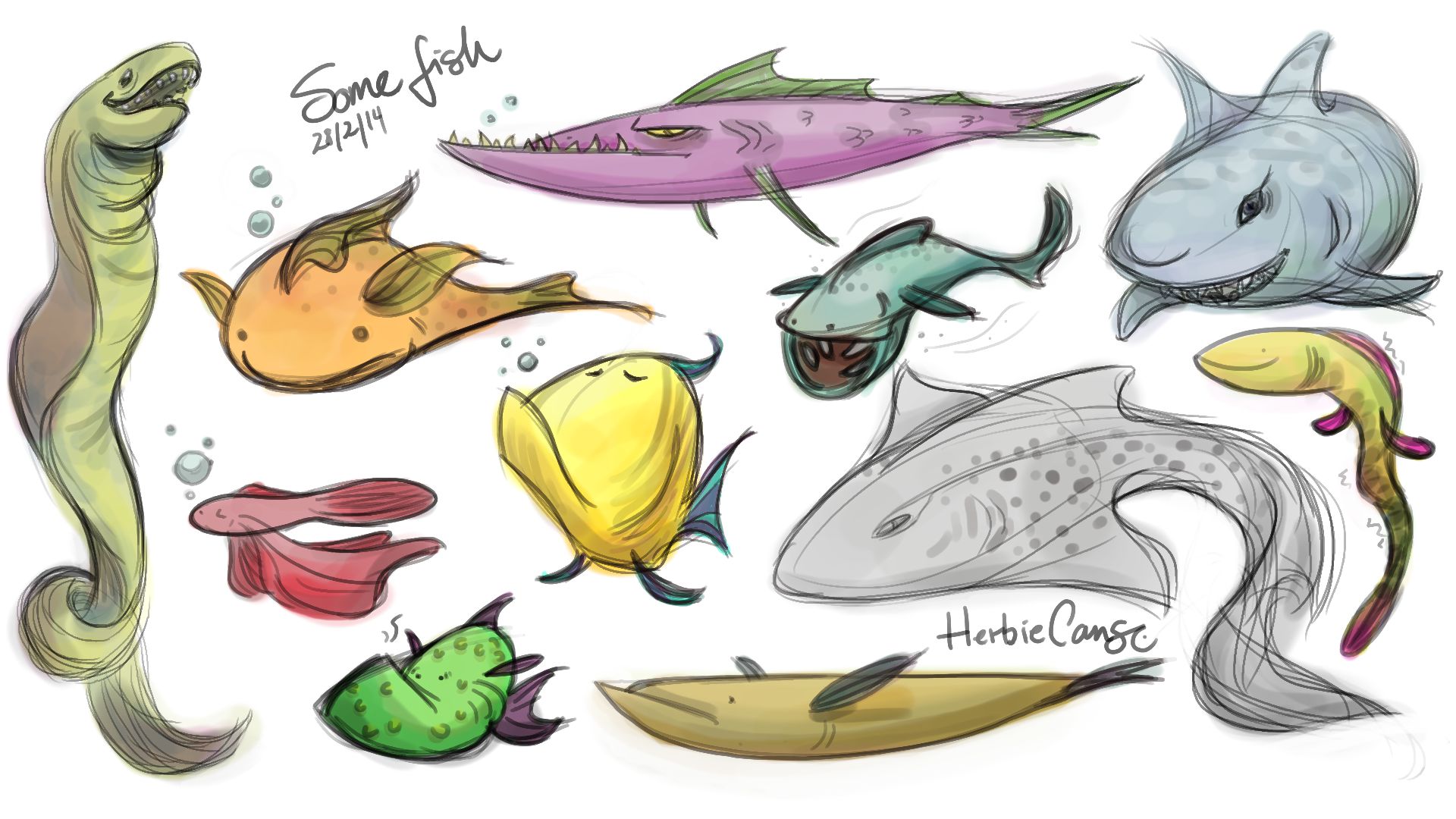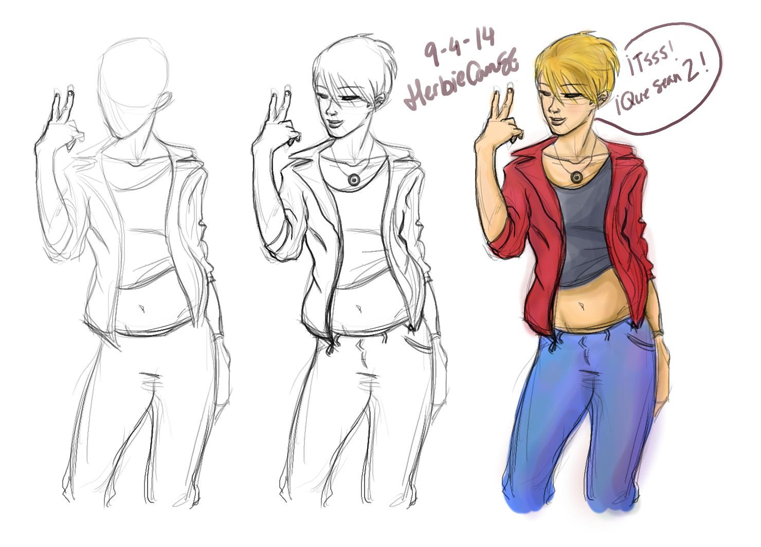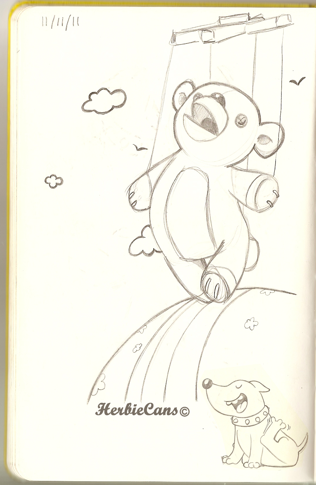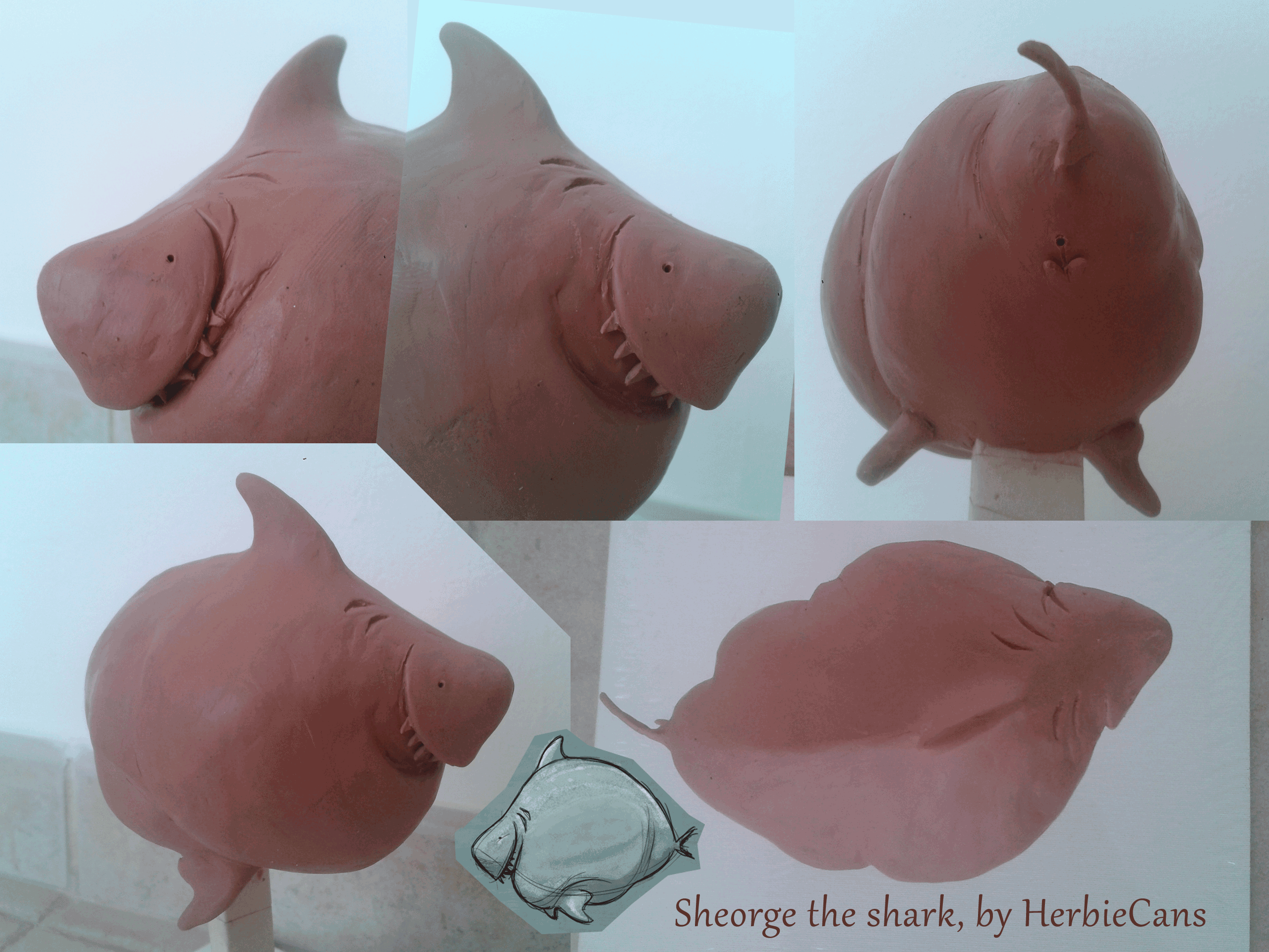 Ya que estoy, voy a subir un personaje que hice ayer. ¿Les parece que en limpio ha perdido? El boceto es más sencillo y he traducido algunas formas de manera diferente en el limpio. Por ejemplo, la pose inferior central en el boceto tiene los ojos simplemente redondos y las orejas hacia arriba. En el limpio, le metí un squash a los ojos y puse las orejas hacia abajo para favorecer la expresión, pero no sé, la sencillez del boceto le da un toque ingenuo que me llama más.