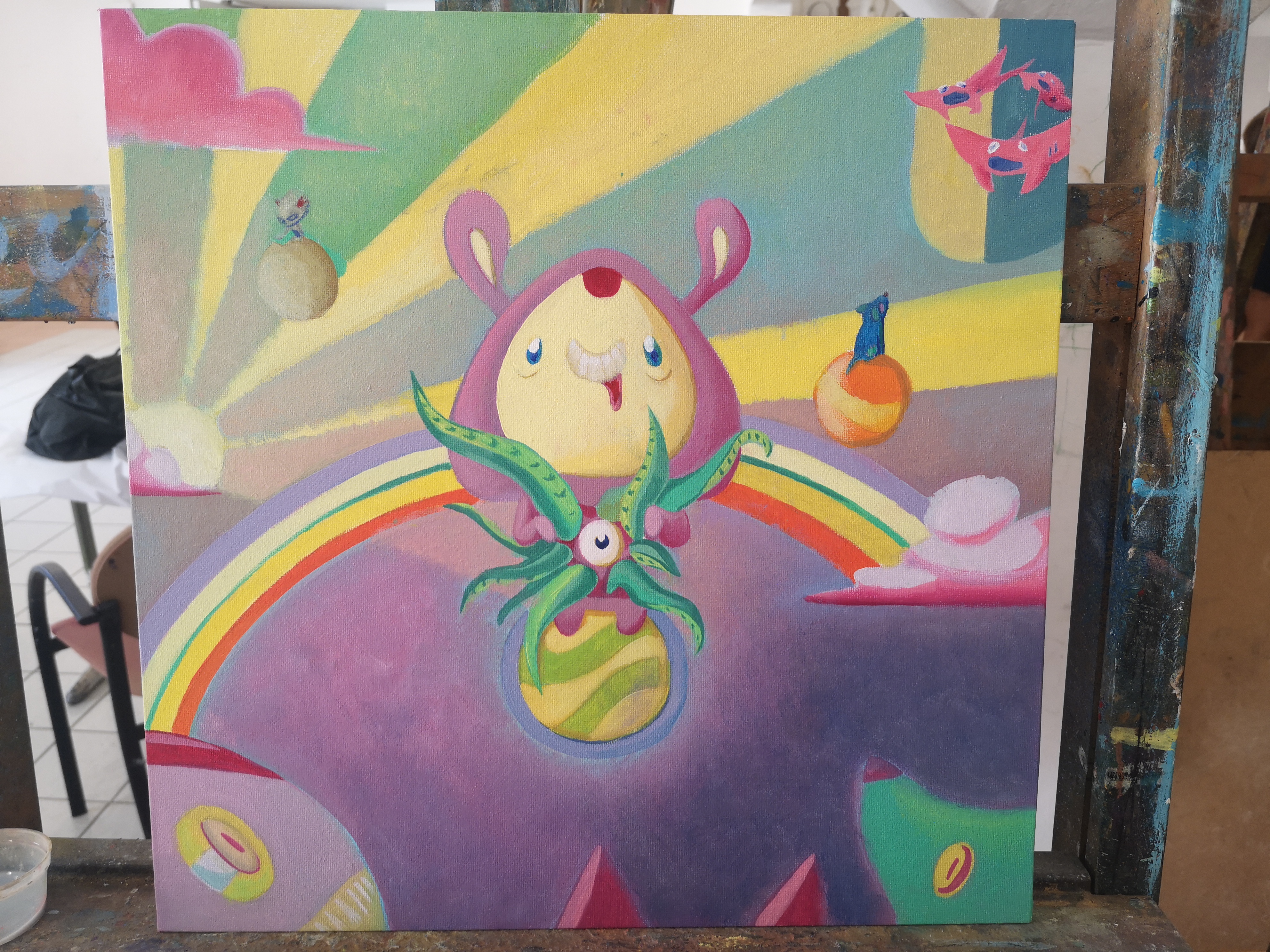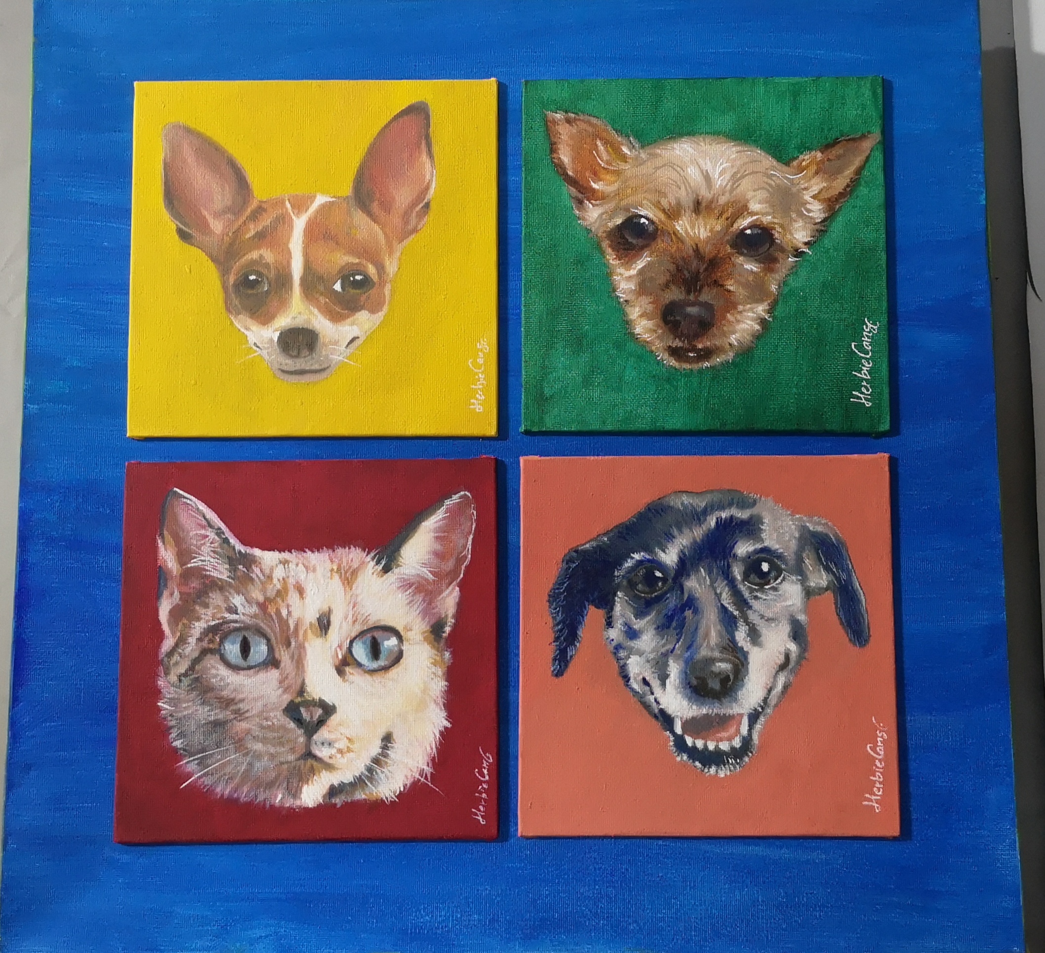 Jo, gracias por el feedback. A mí también me gustan más los bocetos que los renders finales. Si te digo la verdad, suelo cagarla en algún momento del proceso de terminar una pieza, sobre todo si coloreo XD Yo también estoy volviendo al analógico. Estuve yendo a clases de pintura para desestresarme del curro. Demasiado digital tampoco creo que sea bueno. Hice algunos cuadros de la familia peluda de la casa. También voy a colgar un cuadro que empecé en plan una locura de estas de las mías... a ver si lo termino. Son todos óleo sobre lienzo. Los de la familia son 15x15, pequeñitos; el otro ya es en plan 40x40.
