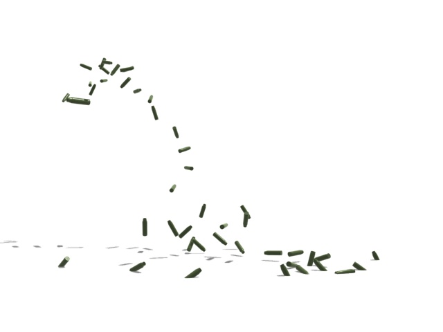 Para que veas como nos las gastamos los ancianos. He modelado una vaina simple (creo que la he hecho delgada) y después quería que siguiera un Path de caída y a la vez giraran aleatoriamente, pero como no he encontrado la forma de que el 3ds Max lo haga a mi manera, pues me lo he currado a manita.