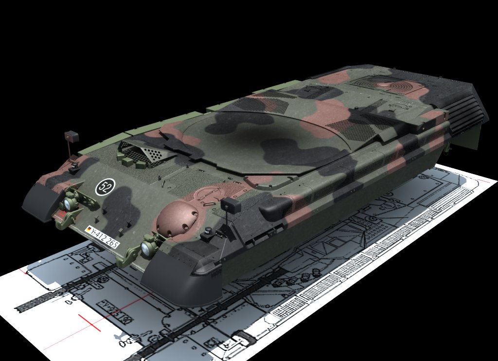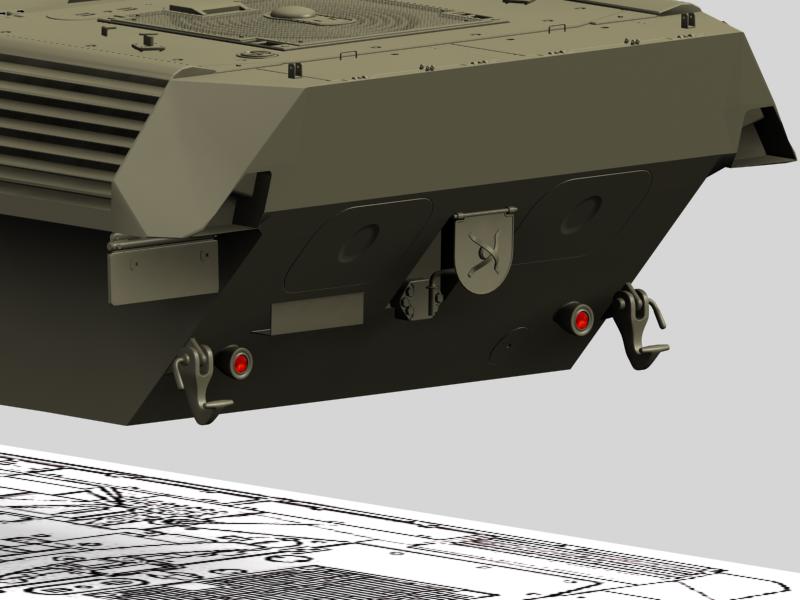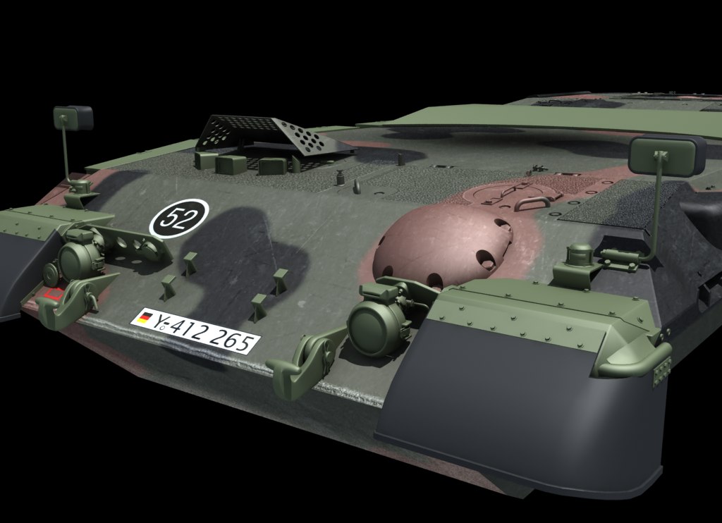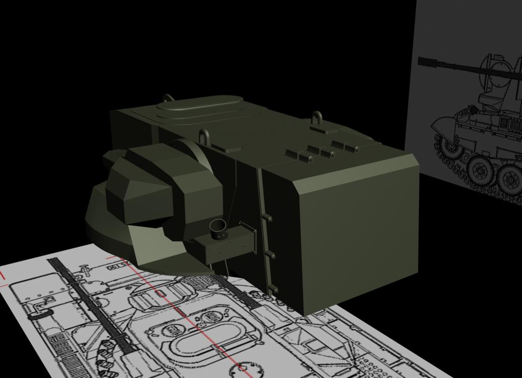 Aquí tójunto faltan insignias, suciedad, matriculas, etc. Y a lo mejor la rede de camuflaje enrollada detrás, ya veremos.