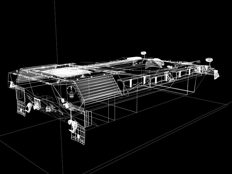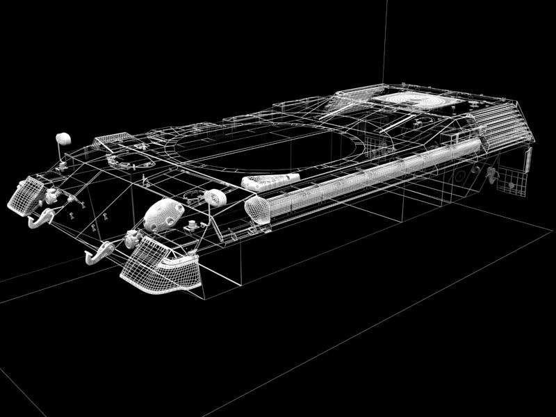Ninguna booleana en los laterales, la única booleana que he hecho ha sido en la chapa que sujeta lel faro derecho, que tiene unos agujeros grandes. Las trapas las he hecho con Shape Merge y esos agujeros de los laterales, supongo que, te refieres a los cuadrados de entrada del aire al motor auxiliar, no son más que extrusiones hacia dentro.