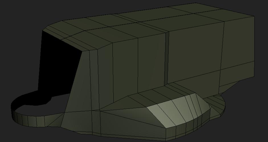 Ésta tarde si puedo le haré los salientes y fijaciones que faltan y la sombrilla del driver. Por cierto Rafa, la cacerola triangular, partí de un plano y moviendo aristas fui esculpiendo hasta cerrarlo por arriba, es jodida de veras, de una caja imposible no me salía ni a la de tres. Me parece que nos quedamos solo tú y yo, no sé por qué a Tirit le tiran más dos tetas. Un saludo.