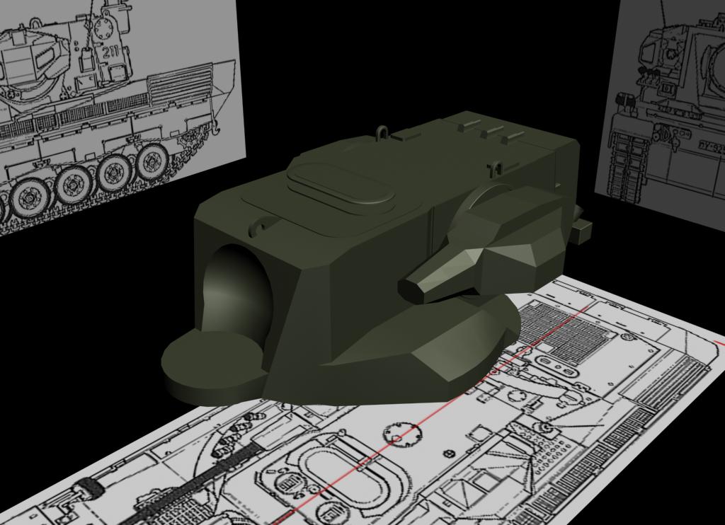 Así que con cascarrios modernos ¿eh? Aquí os dejo la torreta ya camuflada del todo, falta colorear de negro algunos fumígenos y dar el color final a otras partes como el explusor de las vainas, pero asignado ya está todo.
